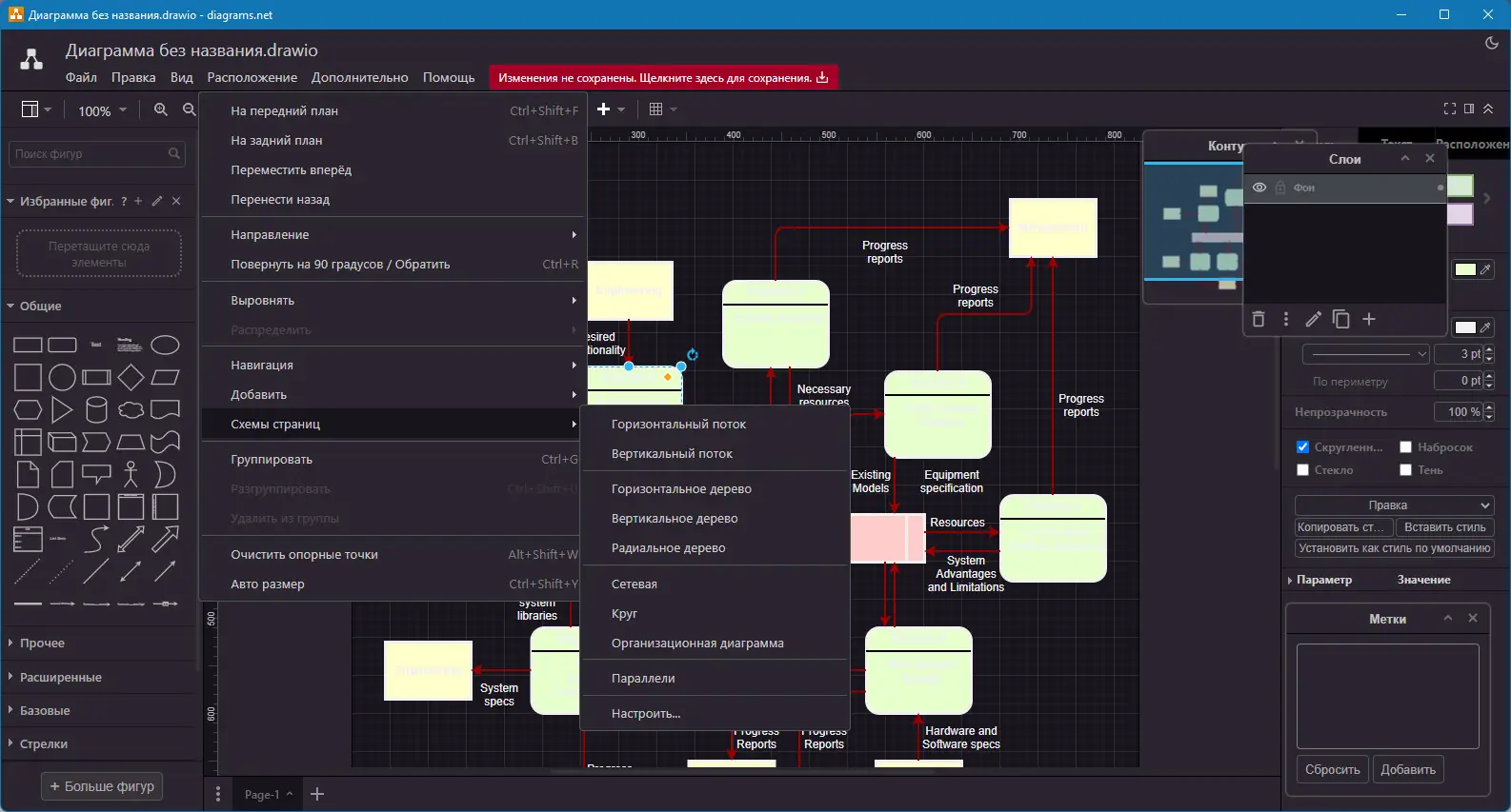 Программа совместима с различными форматами экспорта, включая PNG, SVG и PDF, что обеспечивает гибкость при передаче данных.