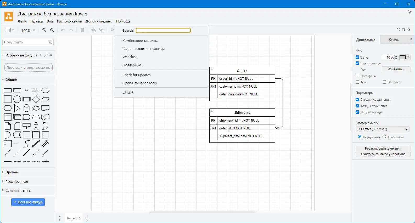 - Работа с диаграммой взаимосвязей между сущностями в базах данных