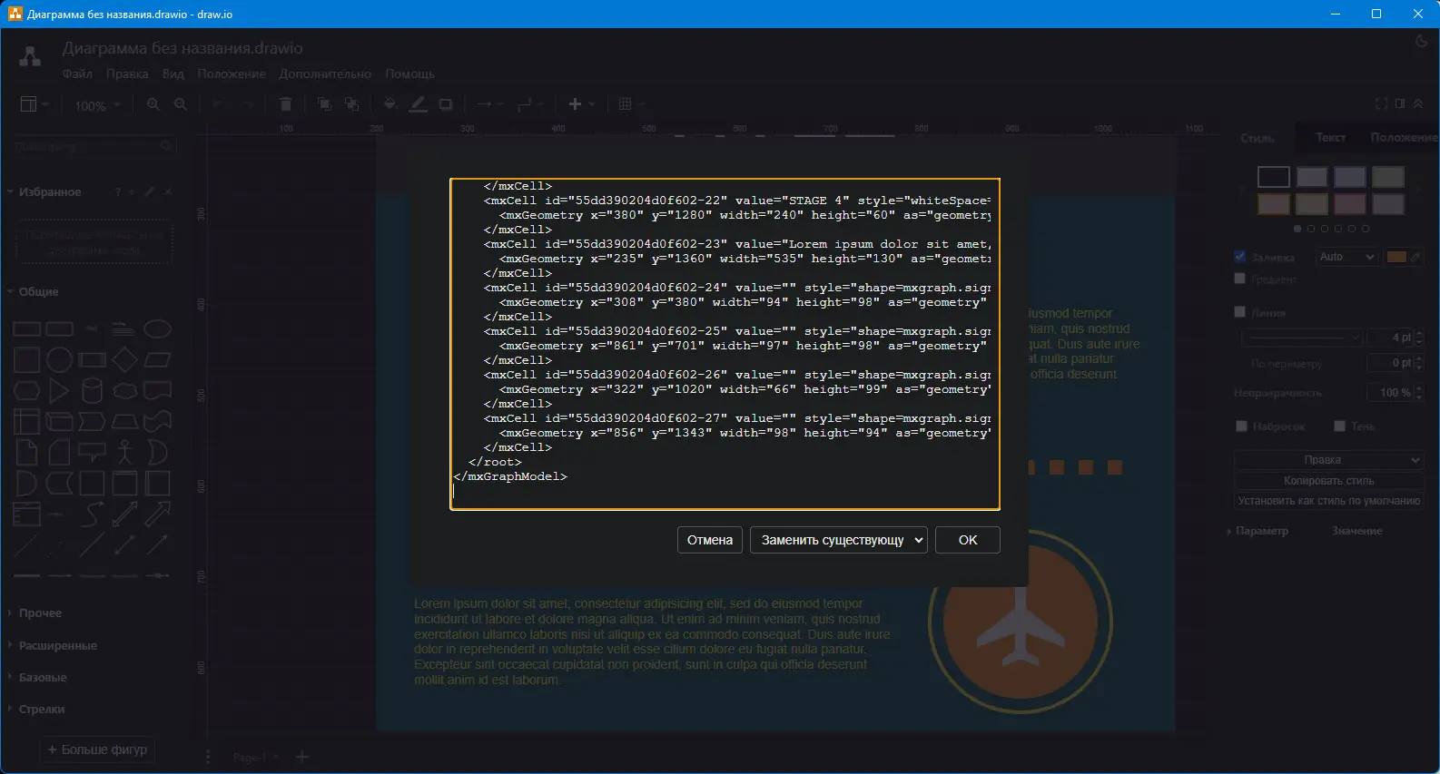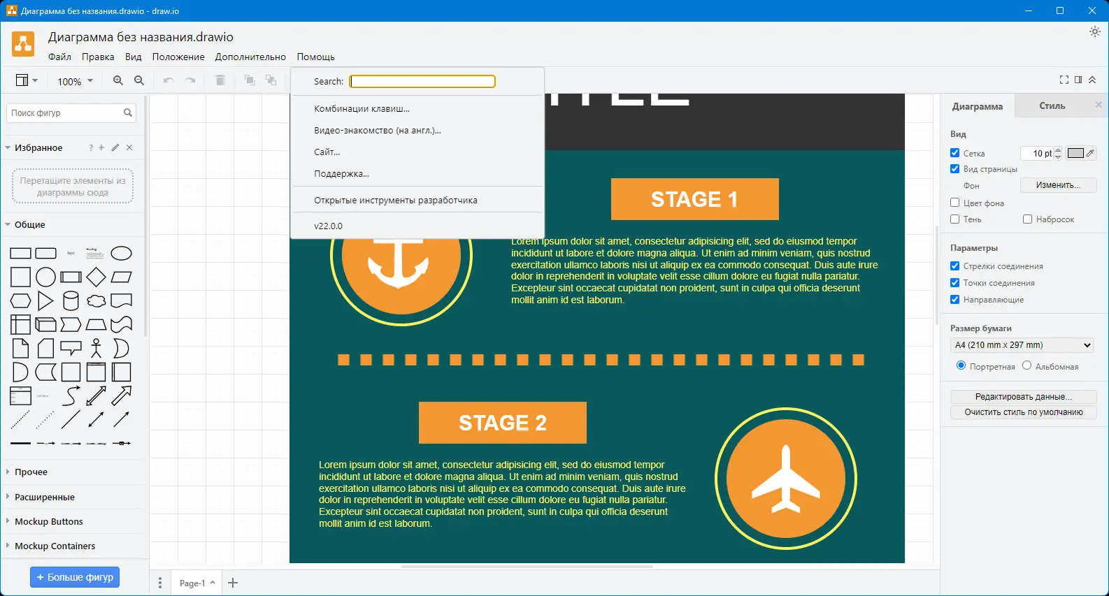 Использование Draw.io не требует специальных навыков. После запуска приложения пользователь видит чистый холст и панель инструментов с категориями объектов: формы, соединители, текст, иконки и другие элементы. Достаточно перетащить нужный компонент на рабочую область, отредактировать его свойства и соединить с другими элементами. Все изменения сохраняются автоматически, а файл можно экспортировать в популярные форматы, включая PNG, JPEG, SVG и PDF. Работа с программой упрощается благодаря возможности масштабирования, выравнивания объектов и использования сетки. Также доступна функция группировки элементов, что удобно при создании сложных схем.