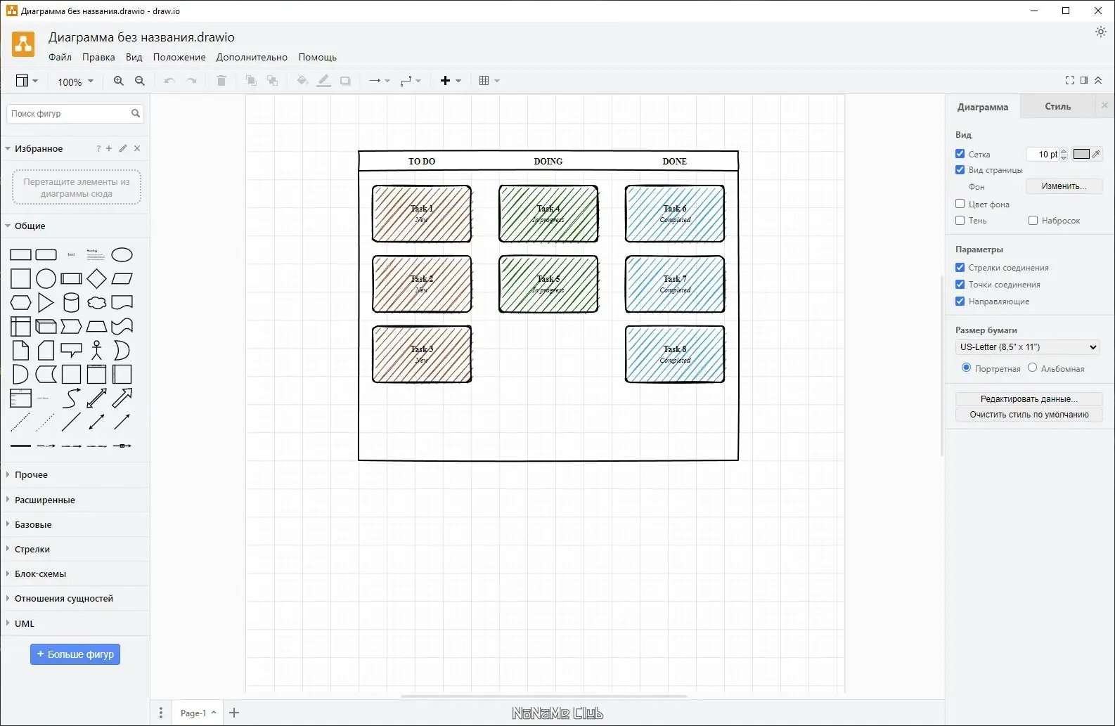 Использование Draw.io не требует специальных навыков и начинается с выбора типа диаграммы. Пользователь может начать с чистого холста или использовать один из готовых шаблонов, включая диаграмму последовательности или канбан-доску. Элементы перетаскиваются с боковой панели, автоматически соединяются линиями, а текст добавляется простым кликом. Поддержка UML и сетевой диаграммы делает приложение незаменимым при разработке IT-проектов. Все изменения сохраняются в реальном времени, а файлы можно хранить локально или в облачных хранилищах.