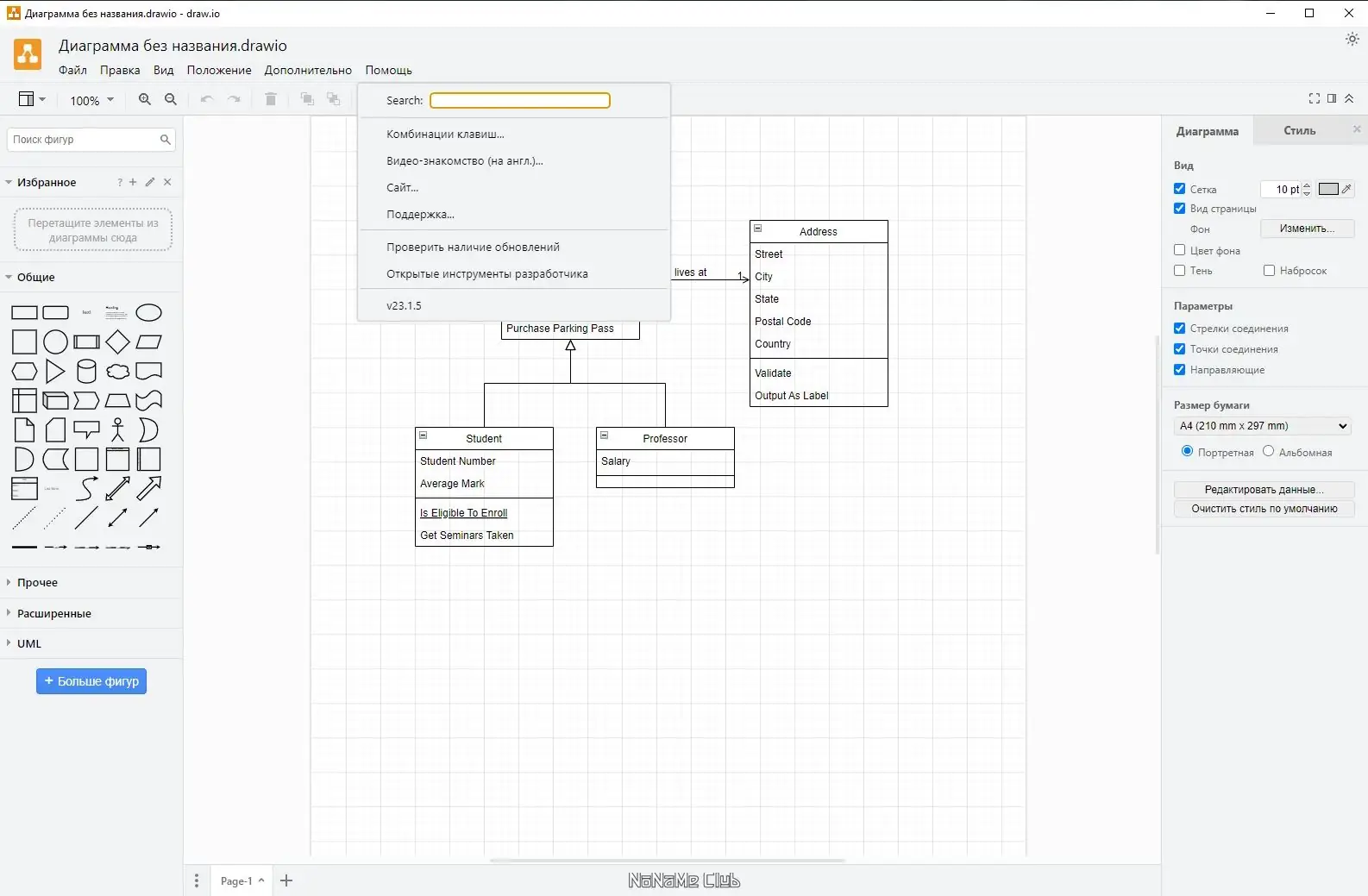 - Экспорт в различные форматы, включая PNG, SVG, PDF и XML