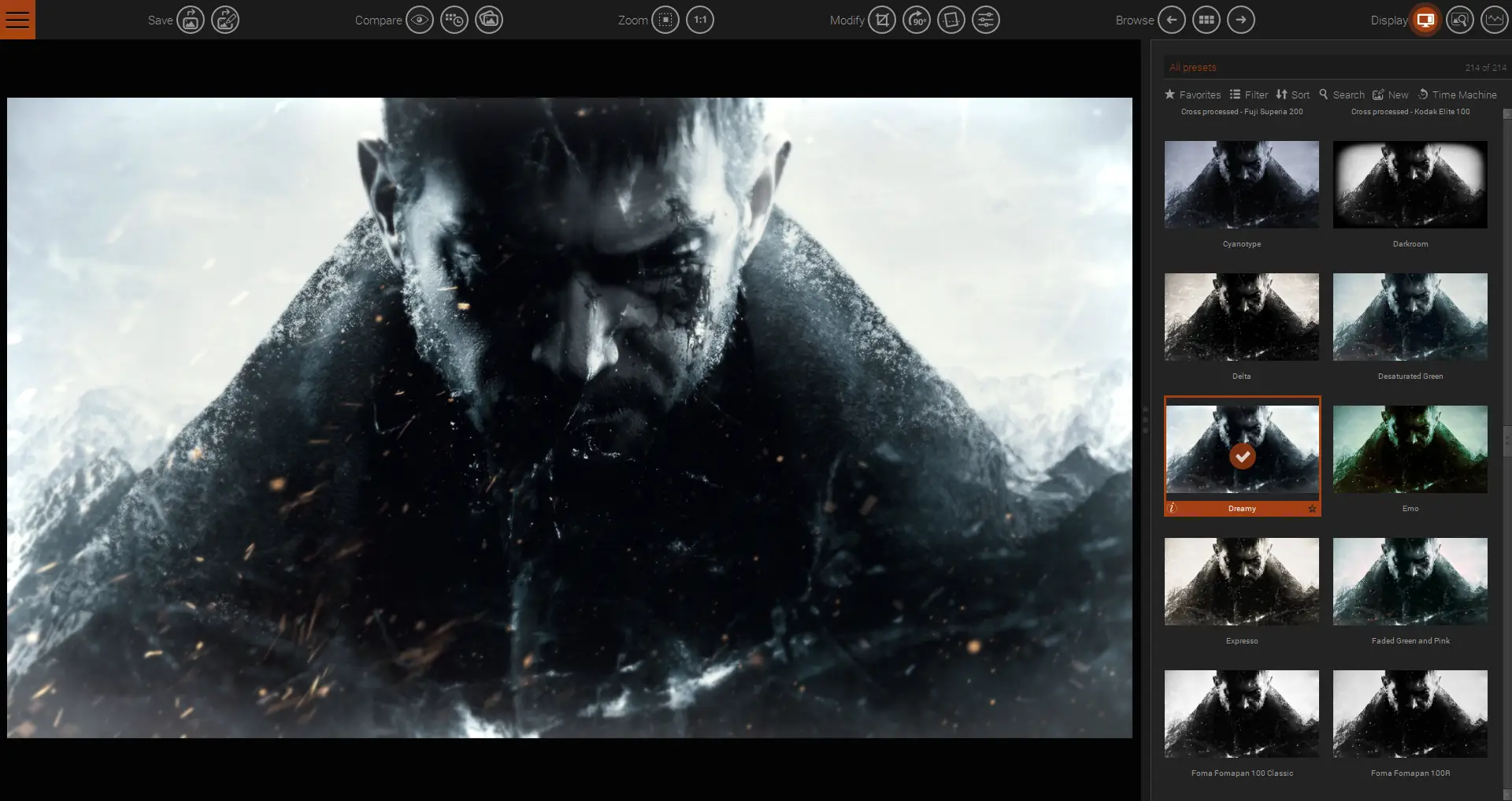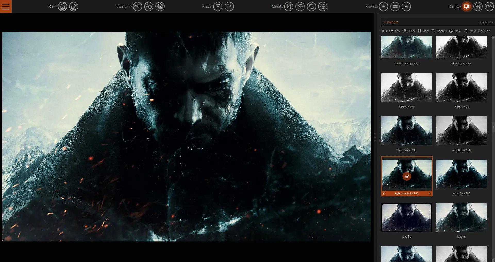 DxO FilmPack выделяется среди других редакторов благодаря глубине проработки каждого фильтра и точности имитации аналоговой плёнки. Программа не перегружена инструментами, что делает её удобной для быстрой обработки без необходимости изучения сложных функций. При этом она предлагает достаточный уровень настройки, чтобы пользователь мог адаптировать эффект под конкретный снимок.