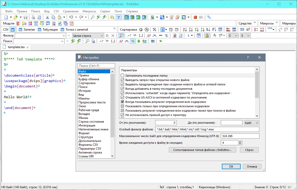 Emurasoft EmEditor — это современный, легковесный и быстродействующий редактор кода, разработанный для эффективной работы с текстовыми и программными файлами любого размера. Программа поддерживает открытие и редактирование файлов объёмом до 248 гигабайт, что делает её одним из лидеров в сегменте обработки больших данных. Архитектура приложения оптимизирована под низкое потребление ресурсов, что позволяет ему работать плавно даже на системах со скромными характеристиками.
