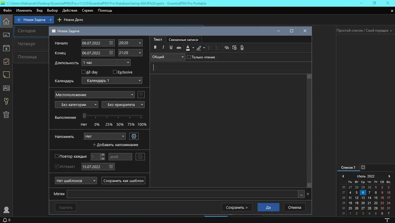 EssentialPIM — это универсальный менеджер персональной информации, объединяющий календарь, задачи, заметки, контакты и почту в едином интерфейсе. Программа поддерживает шифрование, синхронизацию с мобильными устройствами и облачными сервисами, а также работает в режиме portable. Подходит для личного и корпоративного использования благодаря гибким настройкам доступа и расширенным функциям организации данных.
