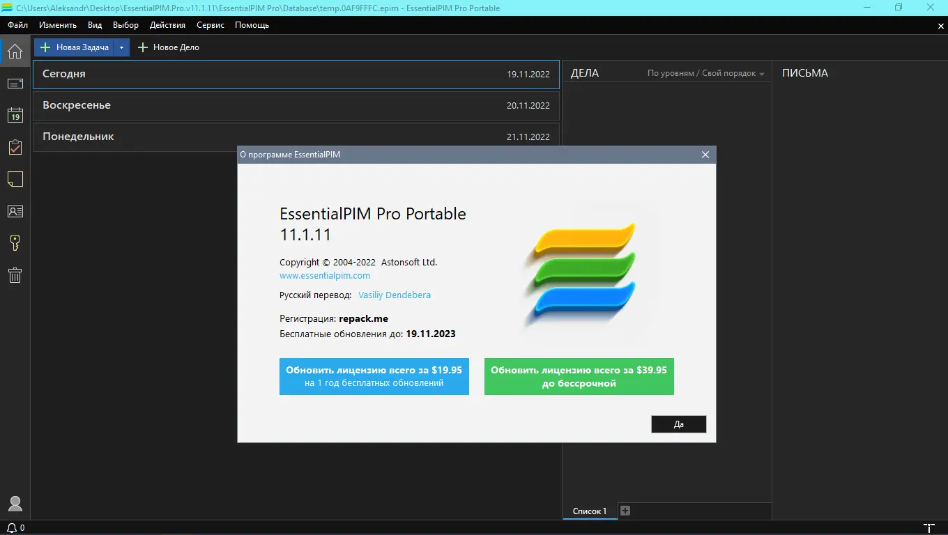 Программа доступна в различных редакциях, включая бесплатную и платную версии с расширенным функционалом. Для активации полной версии требуется ввести лицензионный ключ, полученный после покупки. Существуют аналоги, но немногие из них предлагают такой уровень интеграции между модулями и поддержку мобильных устройств. Установка проходит быстро, а наличие командных параметров позволяет автоматизировать развёртывание. EssentialPIM продолжает развиваться, регулярно получает обновления, улучшающие стабильность и добавляющие новые функции, включая улучшения в версии 12.2 2.