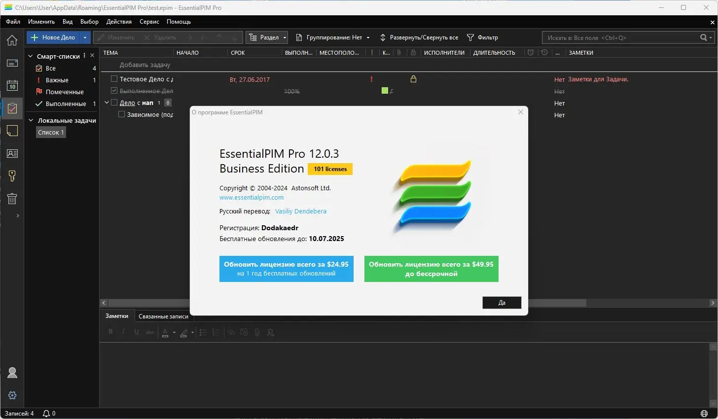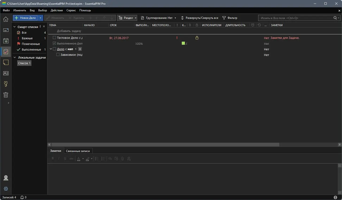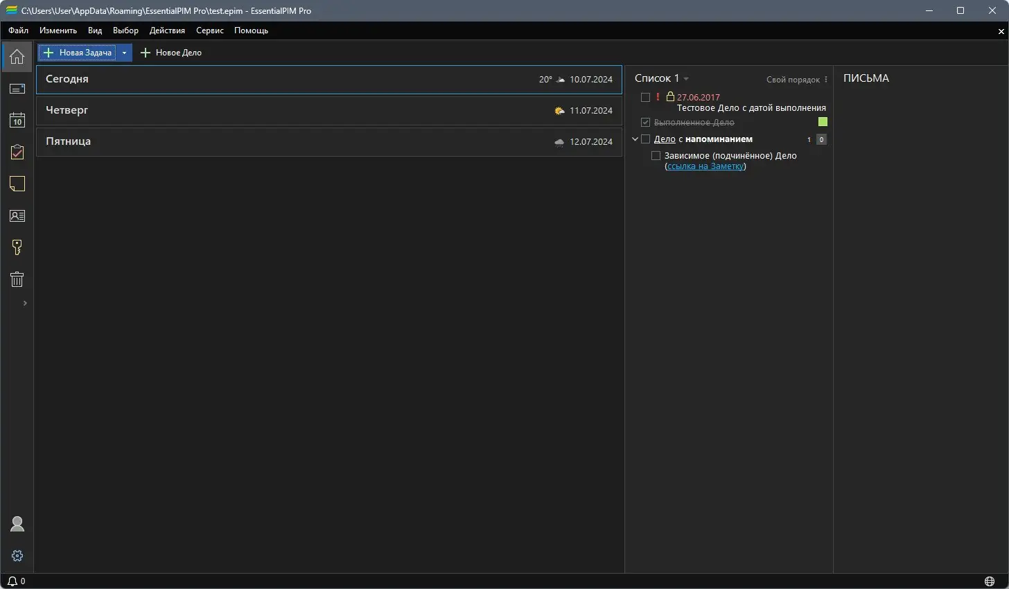 EssentialPIM — это многофункциональный инструмент для управления личной информацией, разработанный для повышения эффективности в повседневной работе. Программа интегрирует электронную почту, календарь, задачи, заметки, контакты и пароли, обеспечивая централизованный доступ ко всей важной информации. Благодаря поддержке формата открытой базы данных Firebird, пользователи сохраняют полный контроль над своими данными, могут экспортировать их и создавать сторонние приложения для взаимодействия с информацией.