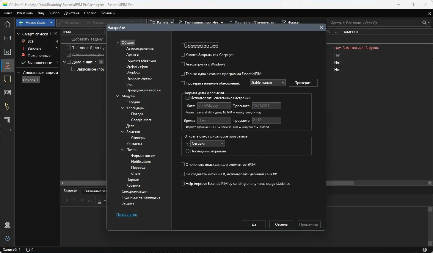 EssentialPIM сочетает в себе простоту интерфейса и глубину настройки, что делает его подходящим как для частных лиц, так и для команд.
