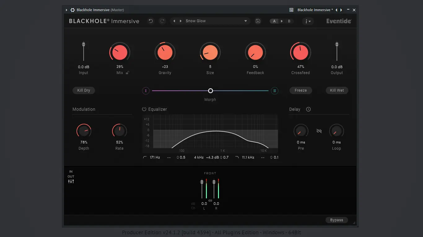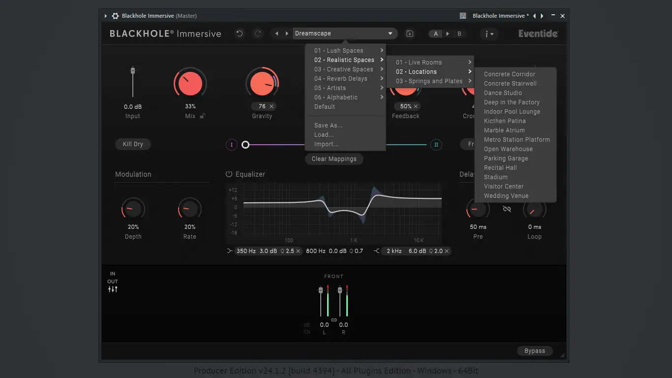 Гибкость алгоритма и прозрачность обработки делают Eventide Blackhole Immersive эталоном в сегменте иммерсивных ревербераторов.
