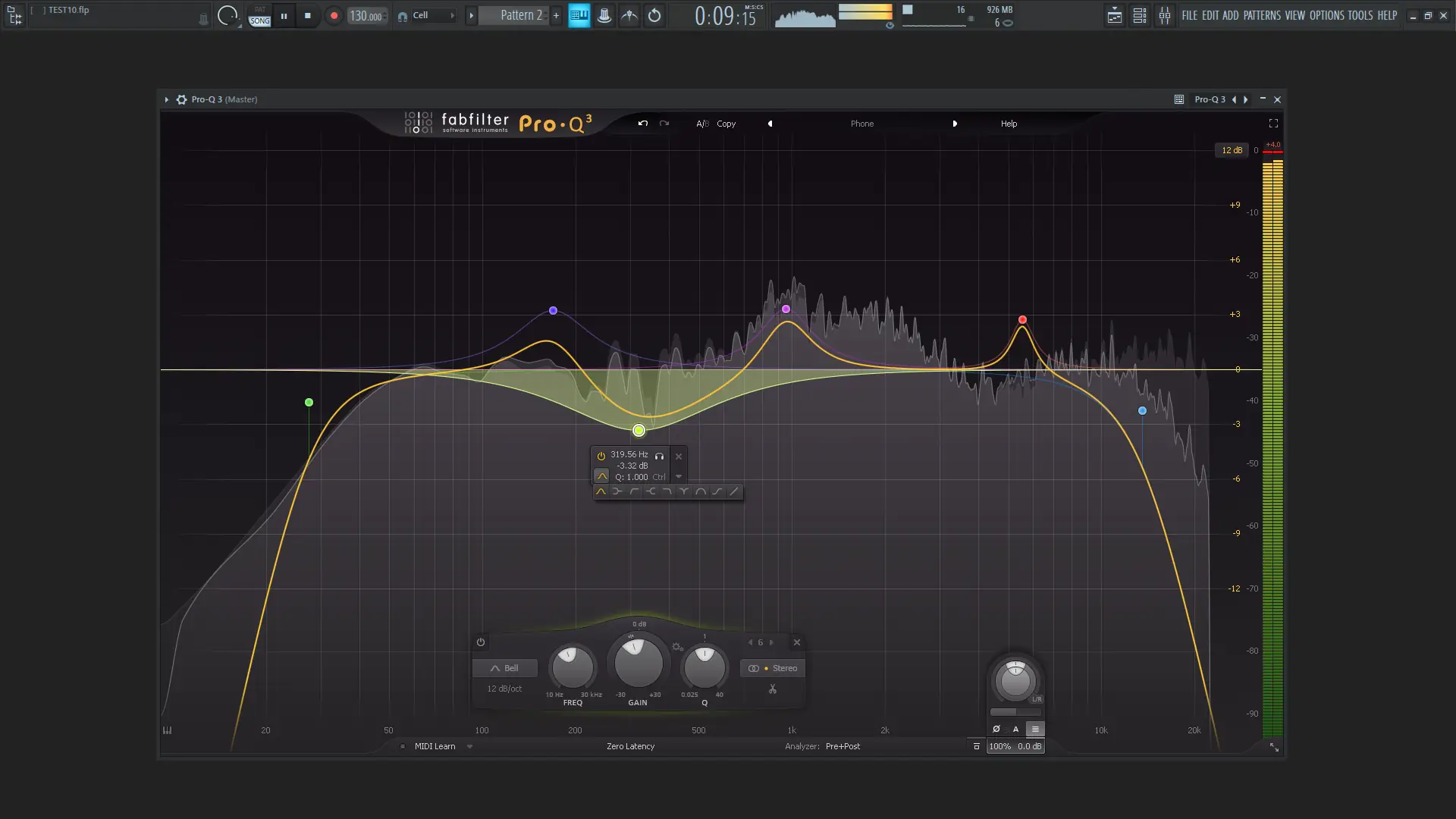 Работа с FabFilter Pro-Q 3 начинается с добавления плагина на трек в цифровой аудиостанции. На графическом дисплее отображается текущий спектр сигнала, на котором можно кликнуть для добавления новой полосы эквализации. Удерживая клавишу Alt и дважды щелкая по дисплею, можно быстро создать динамическую полосу, настраиваемую по порогу и чувствительности. Каждая полоса может быть переключена в режим автопорога, что упрощает обработку сложных звуковых материалов без ручной подстройки.