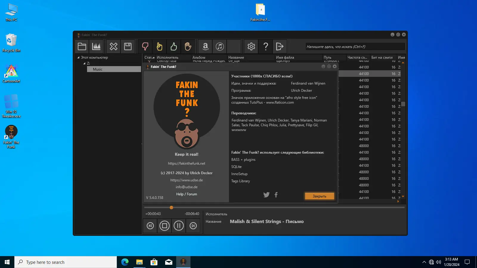 Программа доступна для установки на компьютеры под управлением Windows. Перед началом использования необходимо выполнить установку основного пакета, после чего заменить исполняемый файл в корневой директории на обновлённую версию для активации всех функций. Процесс несложен и описан в сопроводительной информации. После завершения настройки Fakin The Funk готов к анализу музыкальной библиотеки.