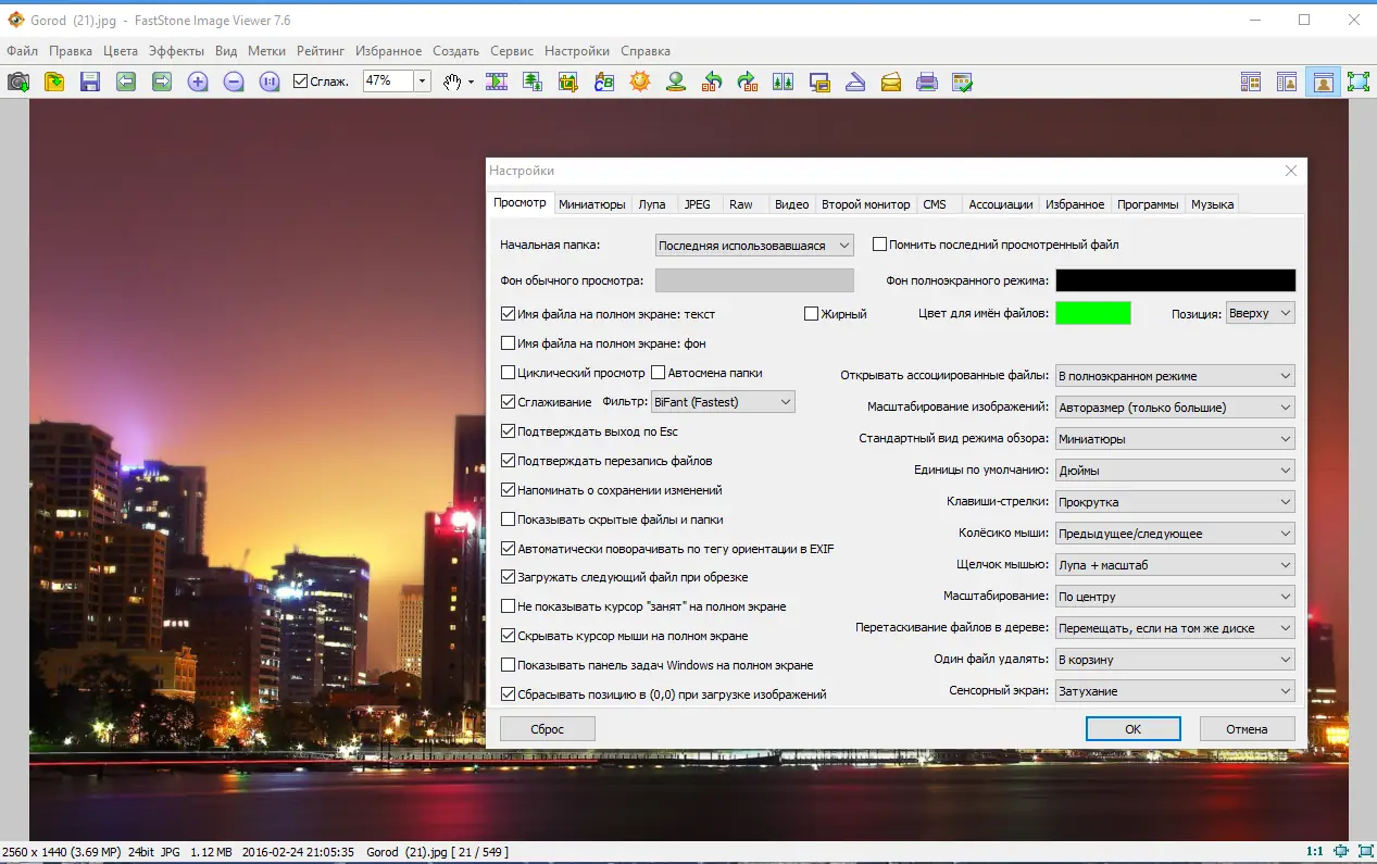 FastStone Image Viewer выделяется среди аналогов высокой скоростью работы, стабильностью и богатым функционалом. Программа оптимизирована для быстрого запуска и эффективной работы с сетевыми дисками, что особенно важно при работе с распределёнными хранилищами. Улучшенные темы интерфейса позволяют выбрать комфортный режим отображения — от яркого до тёмного. Поддержка нескольких мониторов и возможность настройки вторичного экрана расширяют сценарии использования. Однако, несмотря на широкие возможности, некоторые продвинутые функции могут быть неочевидны для новичков без предварительного ознакомления с интерфейсом.
