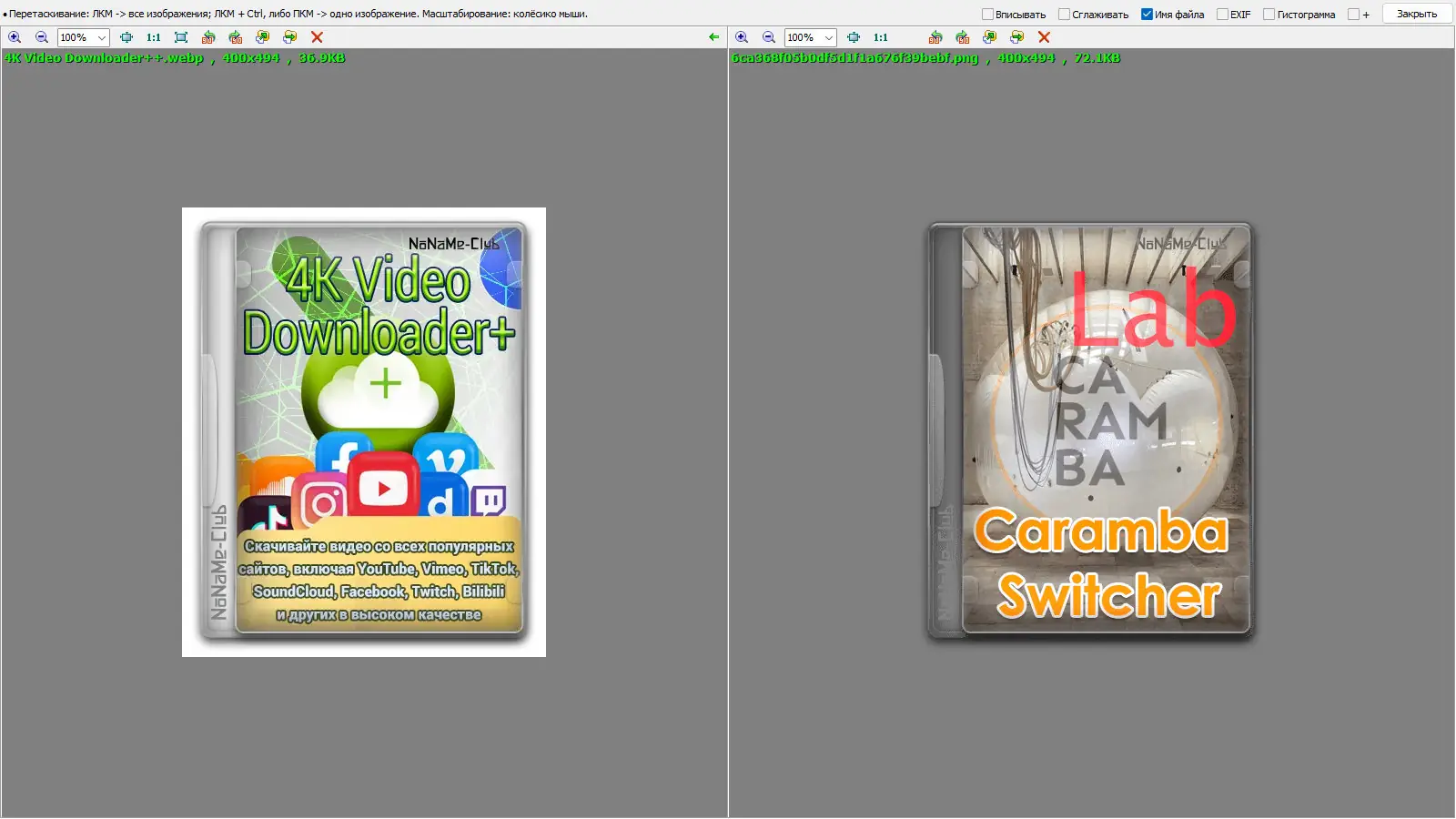 - Поддержка популярных и редких графических форматов, включая RAW и AVIF