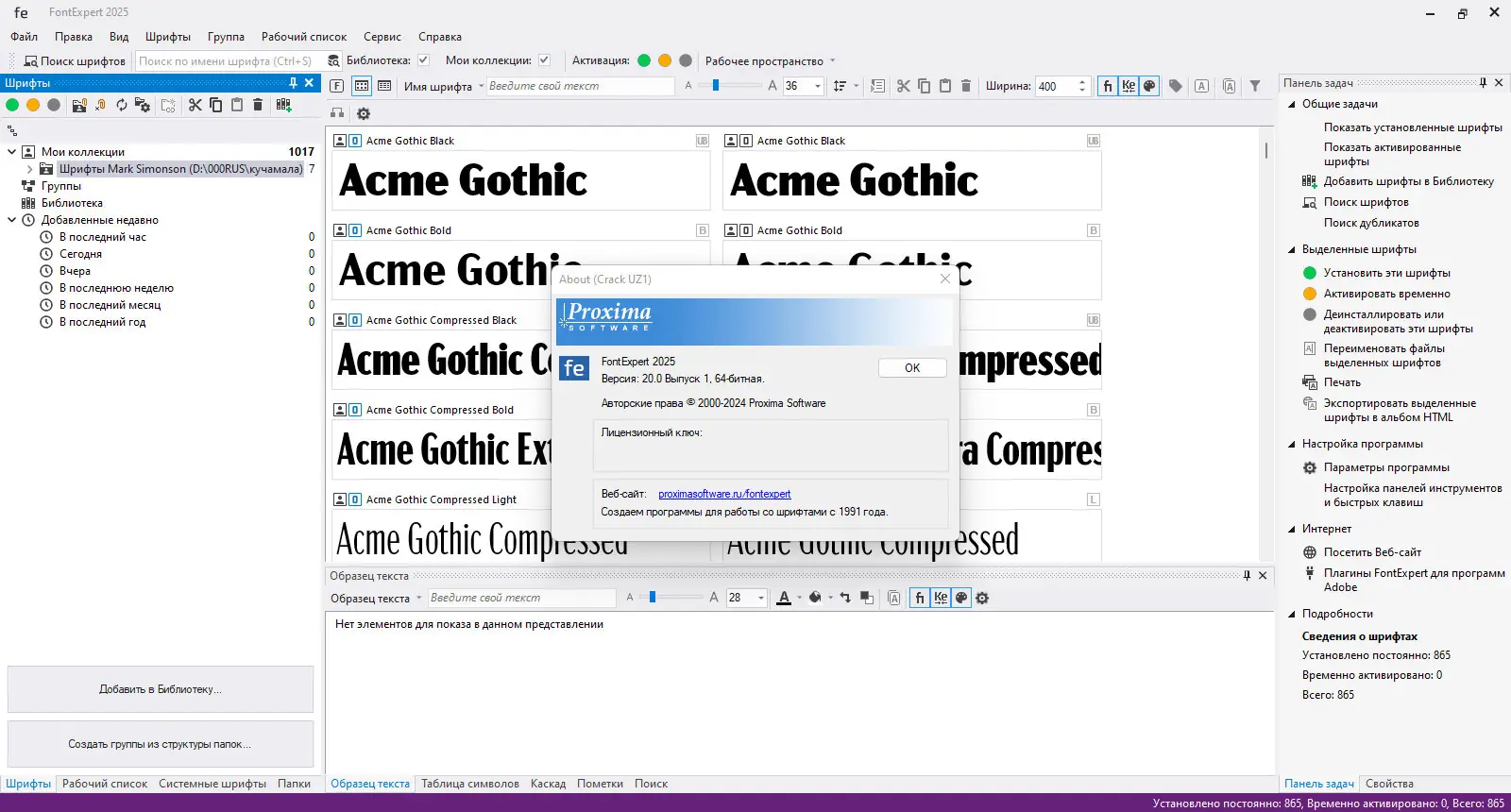 FontExpert — это мощный инструмент для управления, просмотра и диагностики шрифтов на компьютере под управлением Windows. Программа поддерживает форматы TrueType, OpenType и PostScript, обеспечивая удобную навигацию по локальным и сетевым хранилищам. Она позволяет не только просматривать и устанавливать шрифты, но и выявлять повреждённые файлы, устранять конфликты имён и оптимизировать систему.