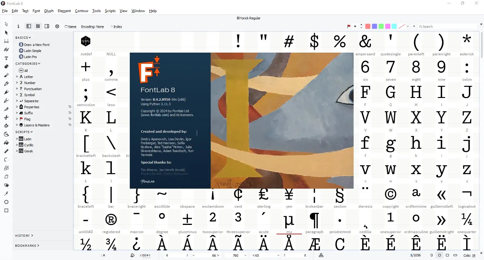 FontLab сочетает в себе мощь профессионального инструмента и удобство интерфейса, что делает его популярным среди как начинающих, так и опытных шрифтовиков. Программа предлагает детальный контроль над каждым аспектом шрифтовой метрики, поддерживает сложные сценарии письма, включая арабское и ивритское, и обеспечивает стабильную работу с большими проектами. Однако из-за высокой функциональности она может показаться сложной для новичков, особенно при первом запуске.