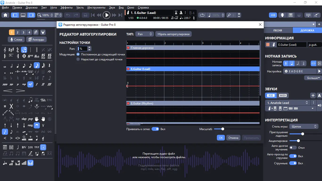Guitar Pro — это мощный нотный редактор, предназначенный для создания, редактирования и прослушивания гитарных табулатур и музыкальных партитур. Программа поддерживает широкий спектр инструментов, включая акустическую и электрогитару, бас, фортепиано и ударные. Благодаря интуитивному интерфейсу и продуманным инструментам, Guitar Pro стал незаменимым помощником для музыкантов, композиторов и педагогов, обучающих игре на струнных и клавишных инструментах.