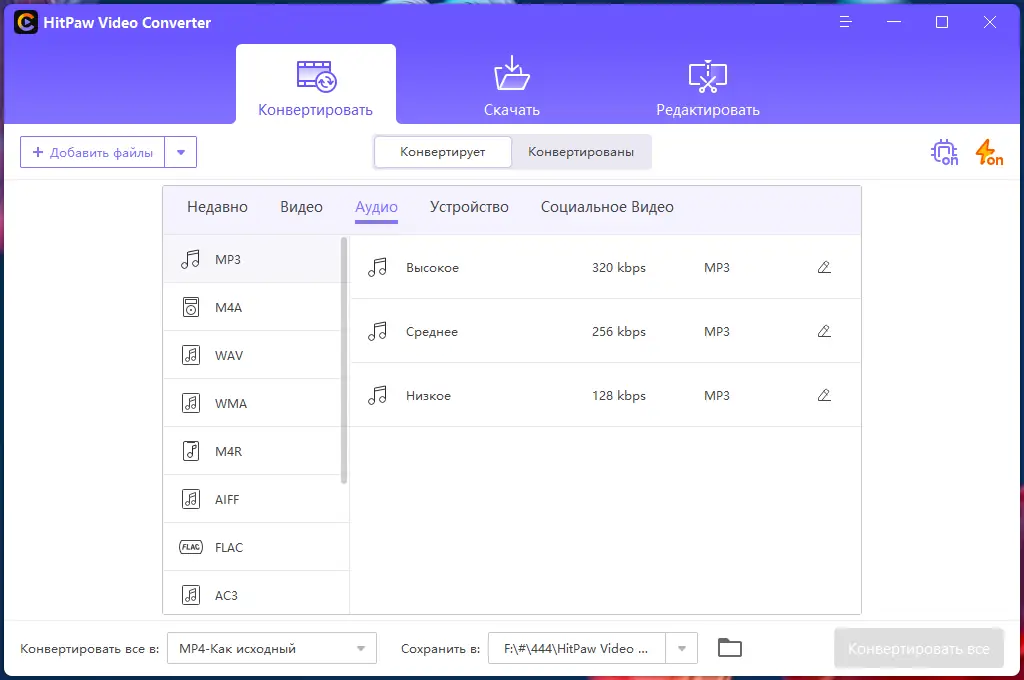 - Высокая скорость конвертации за счёт использования GPU и многопоточности
