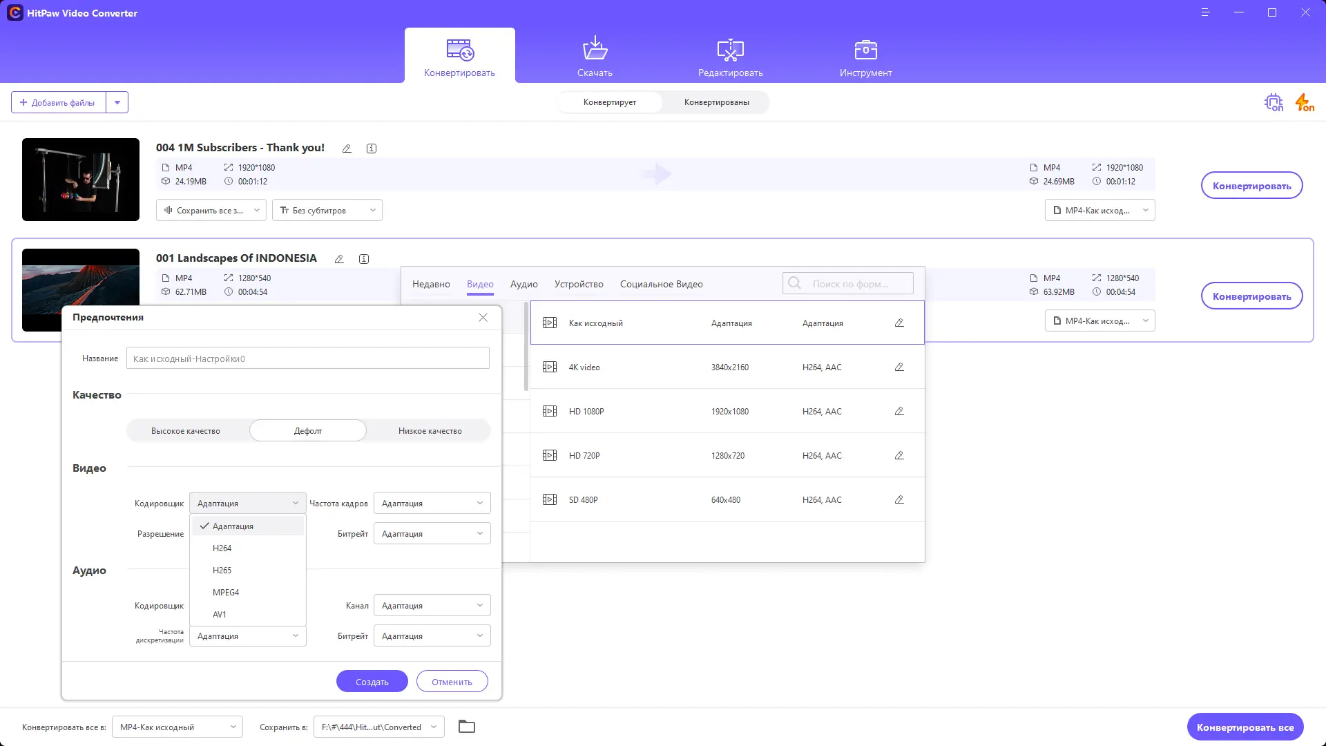 - Поддержка более 800 форматов видео и аудио для конвертации