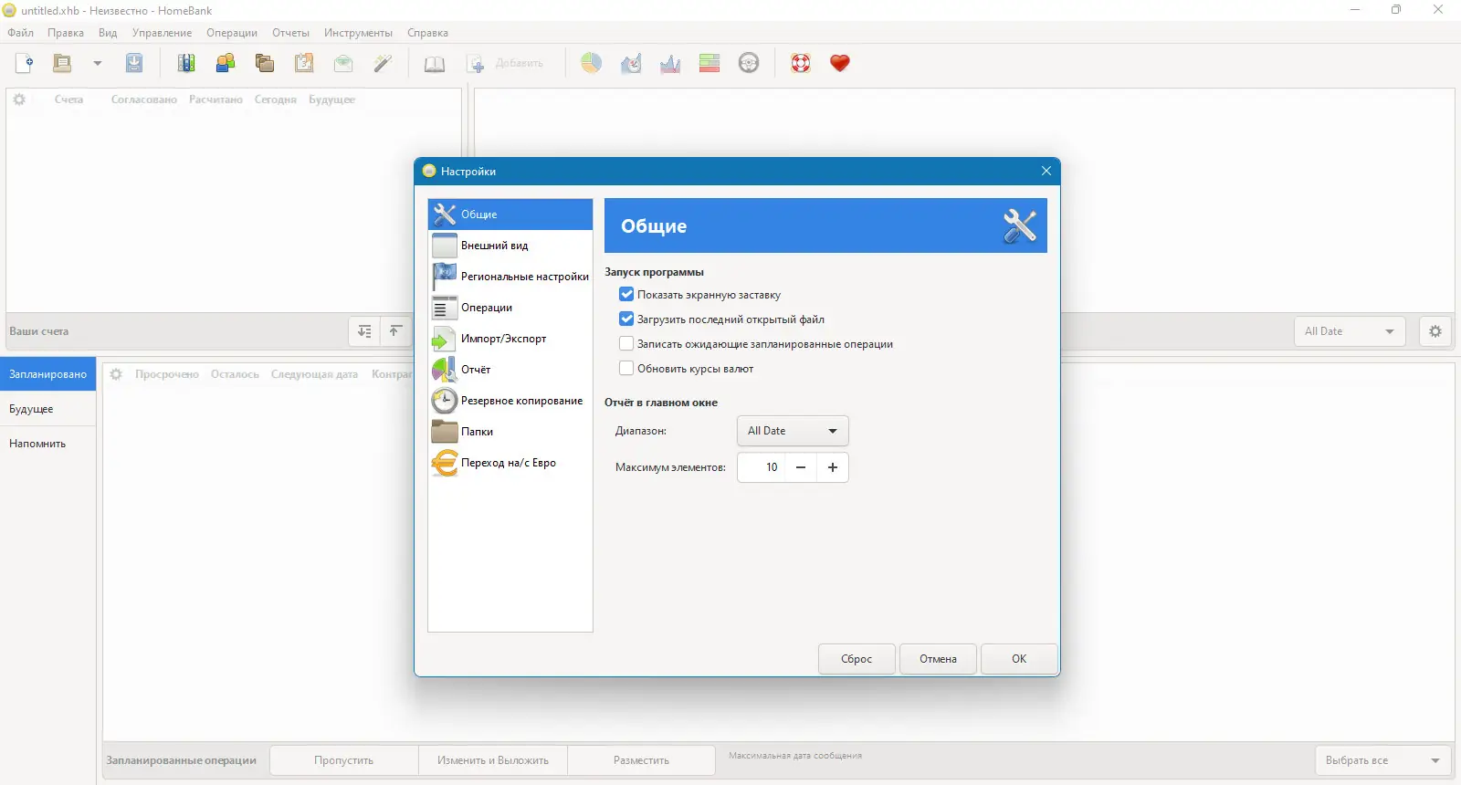 - Гибкие настройки отображения позволяют настроить фильтры по датам, категориям и типам счетов.