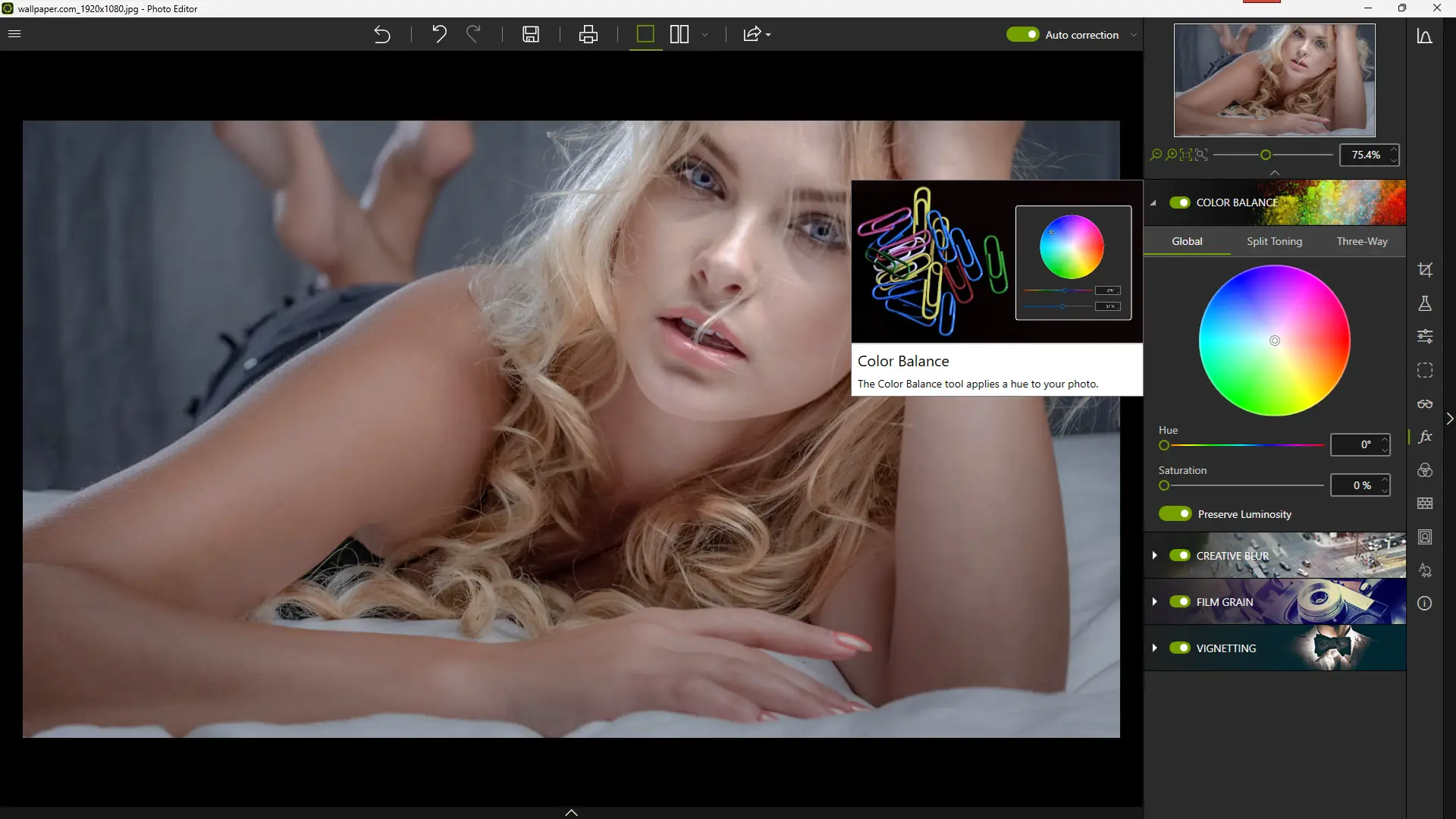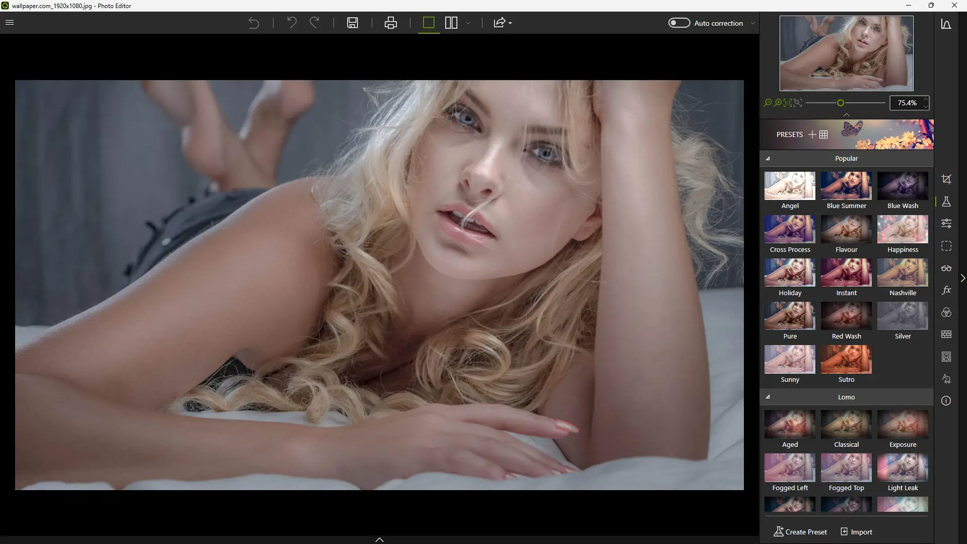 Работа с программой начинается с загрузки изображения через встроенную систему импорта. Далее пользователь может выбрать нужный режим редактирования — от автоматической коррекции до ручной настройки параметров. Каждое изменение отображается в режиме реального времени, что позволяет сразу оценить результат и при необходимости внести корректировки. После завершения обработки файл можно сохранить в популярных форматах, таких как JPEG, PNG или BMP, с возможностью выбора уровня сжатия.