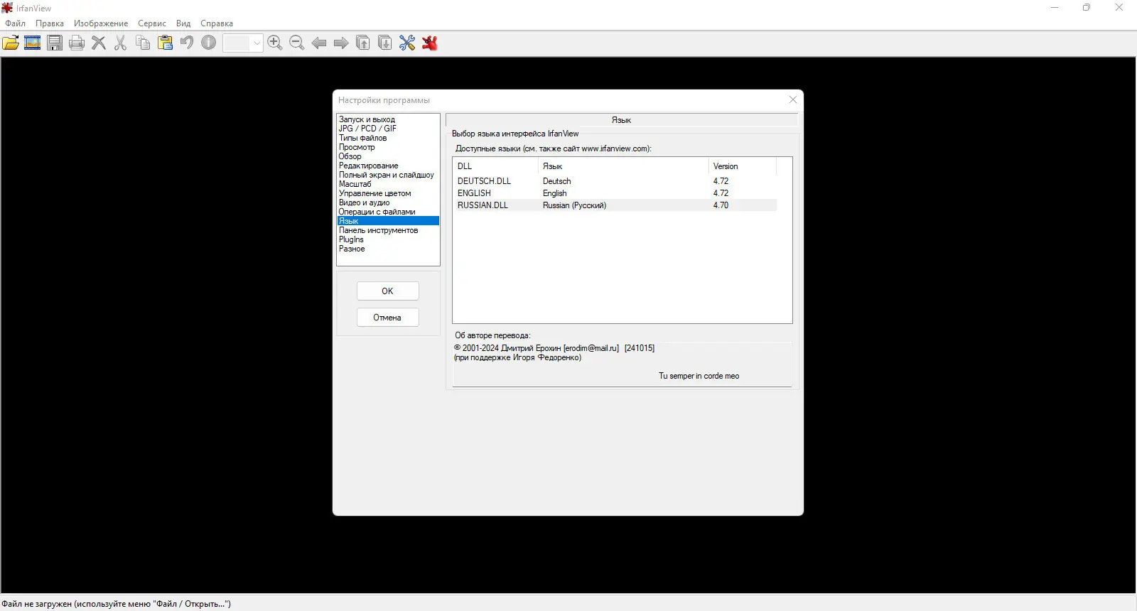 IrfanView — это многофункциональный инструмент, предназначенный для просмотра, редактирования и конвертации графических файлов. Программа работает с более чем сотней форматов, включая популярные JPEG, PNG, GIF, BMP, TIFF, а также специализированные, такие как RAW и PSD. Помимо изображений, приложение способно воспроизводить аудиофайлы и видео, что делает его универсальным решением для работы с мультимедиа. Особое внимание уделено скорости загрузки файлов и минимальному потреблению ресурсов, что особенно важно на слабых компьютерах.