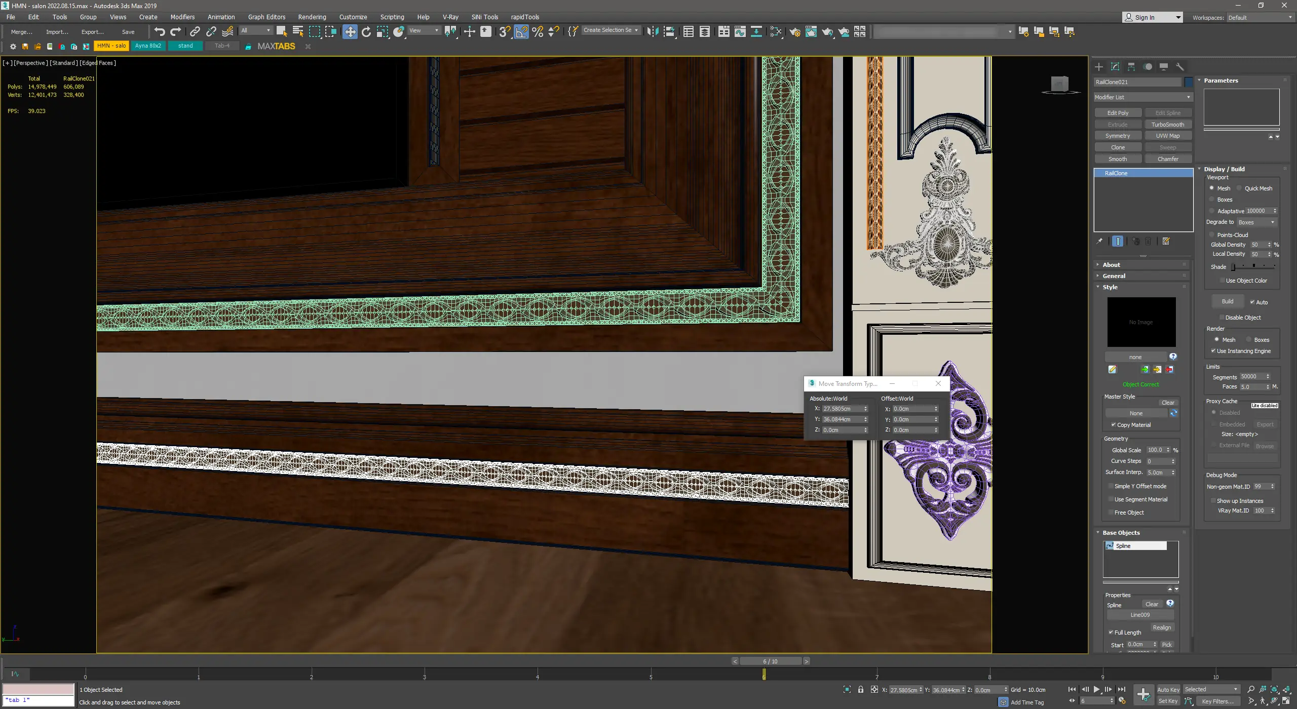 Работа с RailClone Lite начинается с создания пути — линии или кривой, вдоль которой будет распределяться геометрия. Затем пользователь выбирает базовые 3D-модели, которые будут использоваться как повторяющиеся элементы, например, стойки перил или секции ограждения. Через интерфееc параметров задаются правила масштабирования, поворота и интервала между объектами, а также поведение на изгибах и соединениях. Режим обновления в реальном времени позволяет сразу видеть результат изменений без необходимости рендеринга.