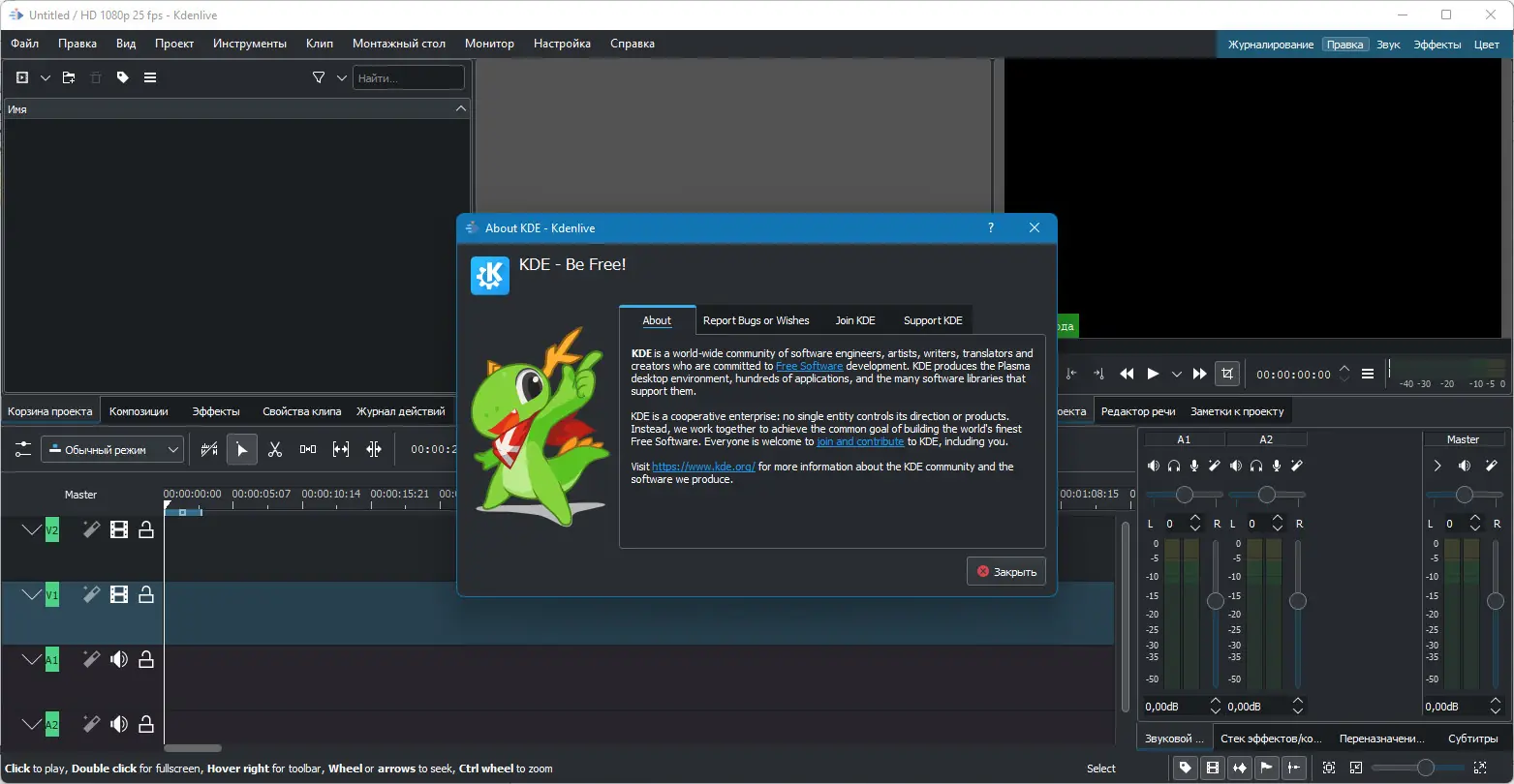Программу можно легко установить на компьютер под управлением Windows, где она стабильно работает на версиях 7, 8.1, 10 и 11 разрядности x86 и x64. Сборка поставляется в виде standalone-версии с цифровой подписью, что исключает необходимость в установке дополнительных компонентов. Интерфейс доступен на русском языке — его можно включить в настройках, выбрав нужный язык в разделе смены локализации. Проект активно развивается, и каждое обновление приносит новые функции, исправления и улучшения стабильности. Чтобы как сохранить прогресс в работе, достаточно регулярно сохранять проекты в родном формате Kdenlive. Поддержка различных переходов и эффектов делает процесс монтажа гибким и творческим. Это полноценный видео-инструмент, который можно скачать бесплатно и использовать для создания качественного видео. Скачать видеоредактор на русском языке — простое решение для тех, кто ищет надёжное ПО для редактирования видео на платформе Windows.