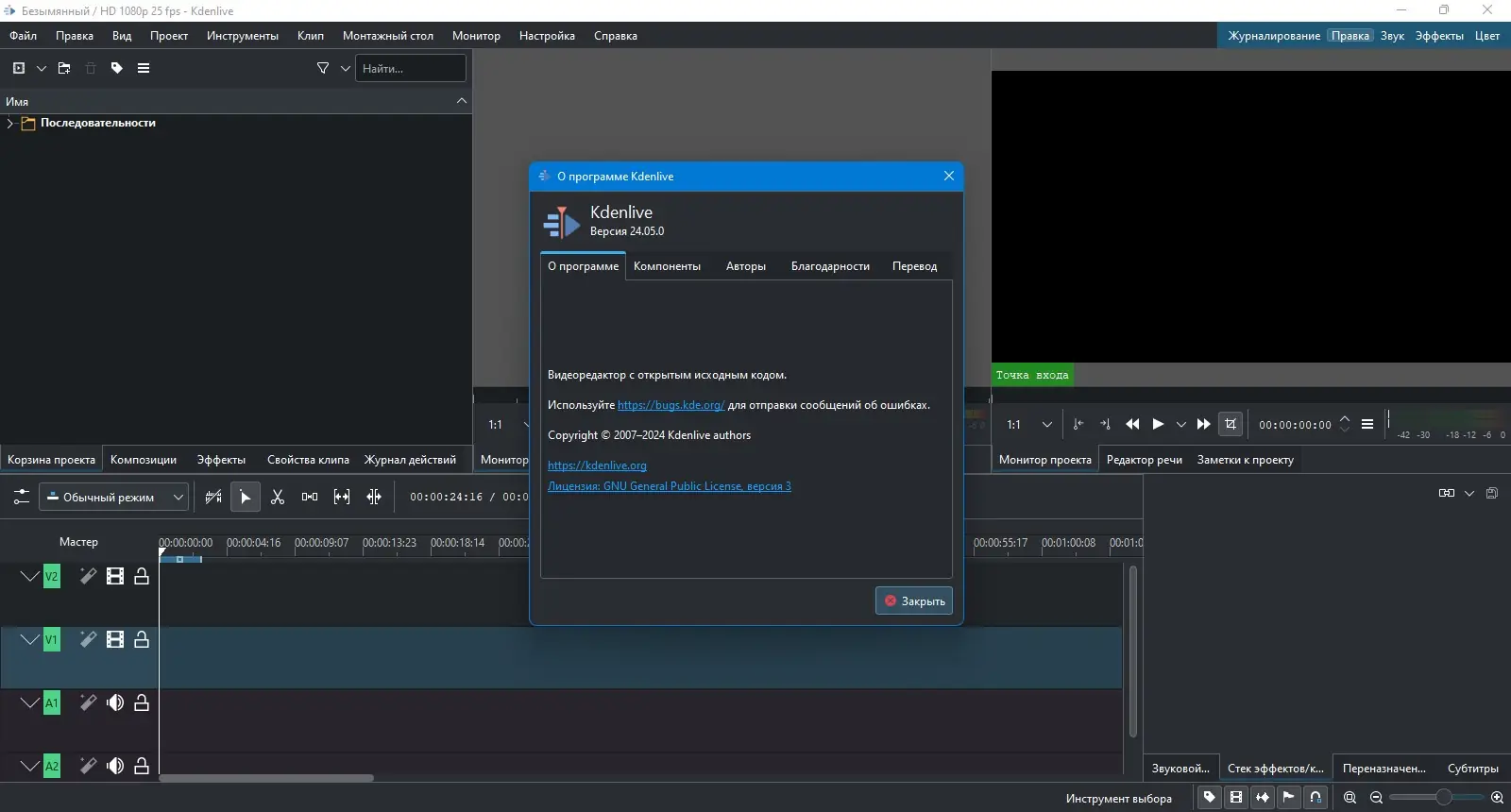 Kdenlive — это мощный и гибкий видеоредактор с открытым исходным кодом, предназначенный для нелинейного монтажа видео на компьютере. Программа поддерживает широкий спектр форматов, предлагает продвинутые инструменты для обработки видео и аудио, а также предоставляет удобный интерфейс, адаптируемый под нужды пользователя. Благодаря своей стабильности и функциональности, она подходит как для новичков, так и для опытных видеомонтажёров.