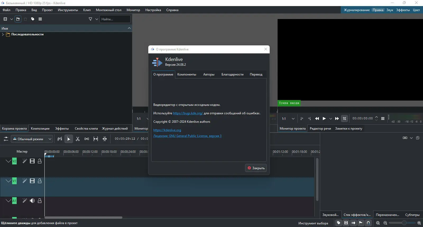 Kdenlive — это мощный и гибкий нелинейный видеоредактор с открытым исходным кодом, предназначенный для монтажа видео на высоком уровне. Программа поддерживает широкий спектр форматов, предлагает продвинутые инструменты для обработки аудио и визуальных эффектов, а также позволяет создавать сложные многодорожечные проекты. Благодаря интуитивному интерфейсу и обширным возможностям, она подходит как для новичков, так и для профессионалов, работающих с видео.