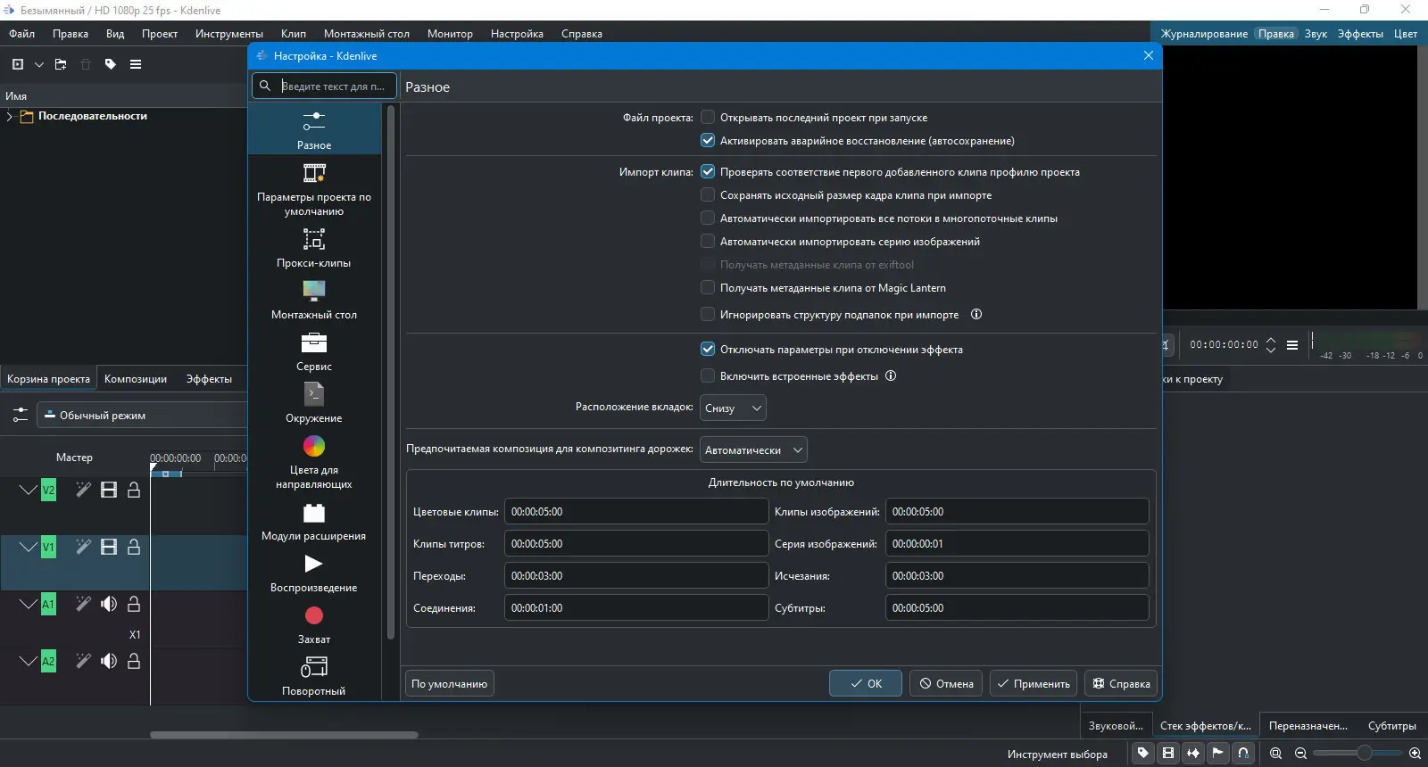 Kdenlive — это мощный и гибкий видеоредактор с открытым исходным кодом, предназначенный для создания и обработки видео на высоком уровне. Программа поддерживает широкий спектр форматов, предлагает инструменты для многодорожечного монтажа, наложения эффектов и работы с аудио. Она подходит как для новичков, так и для опытных пользователей, стремящихся создавать качественный контент.