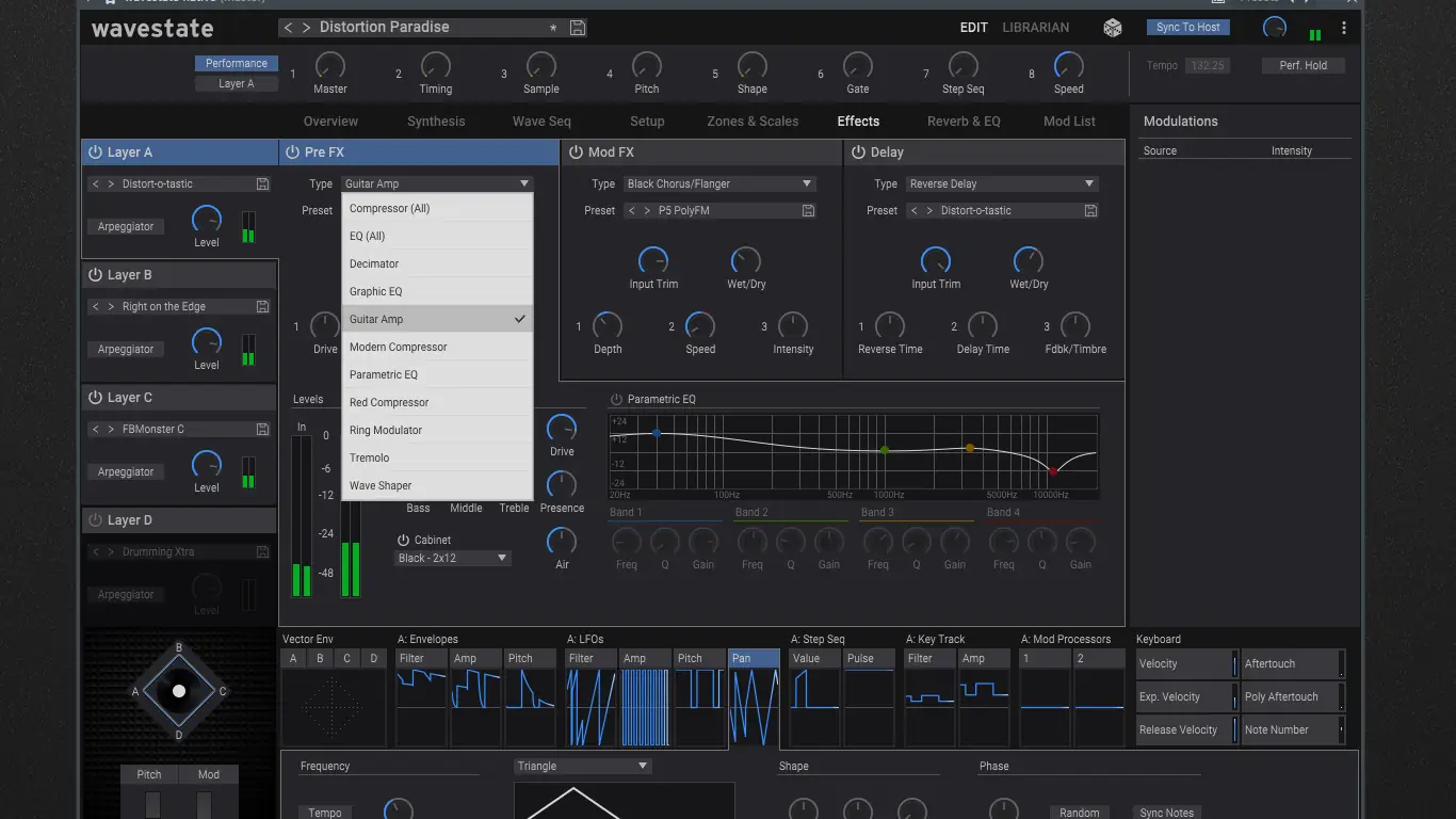 - Более 14 встроенных эффектов, включая реверберацию, задержку и модуляцию