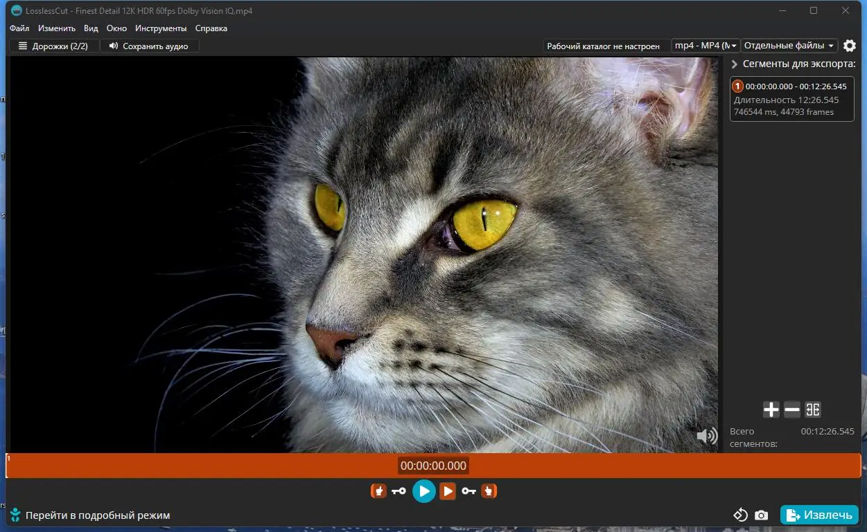 LosslessCut — это инструмент для быстрой и точной обрезки видео и аудио без перекодирования, позволяющий сохранить исходное качество медиафайлов. Программа идеально подходит для монтажа фрагментов, извлечения сцен, создания клипов и работы с мультимедийным контентом в профессиональных и домашних условиях. Основанная на технологиях FFmpeg и движке Chromium, она обеспечивает высокую скорость обработки за счёт отсутствия декодирования при нарезке.