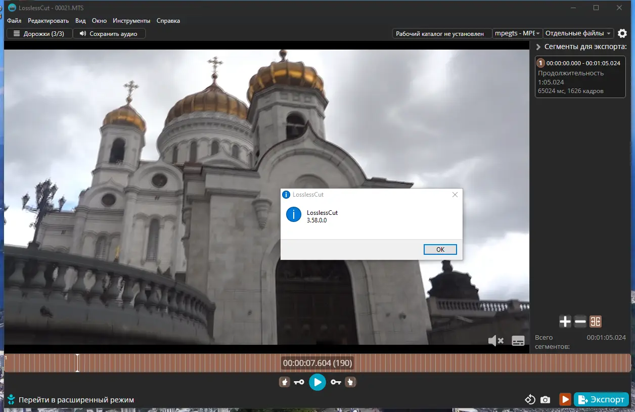 - Обрезка видео и аудио без перекодирования, что обеспечивает максимальную скорость и сохранение качества.
