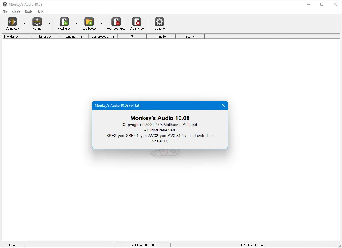 Monkey’s Audio доступна для бесплатного использования и подходит для операционных систем Windows начиная с седьмой версии, включая 10 и 11, как в 32-, так и в 64-битных редакциях. Утилита имеет англоязычный интерфейс, но поддерживает русский язык через сторонние патчи или плагины. Благодаря компактности и стабильности работы, она остаётся актуальной даже на современных системах.