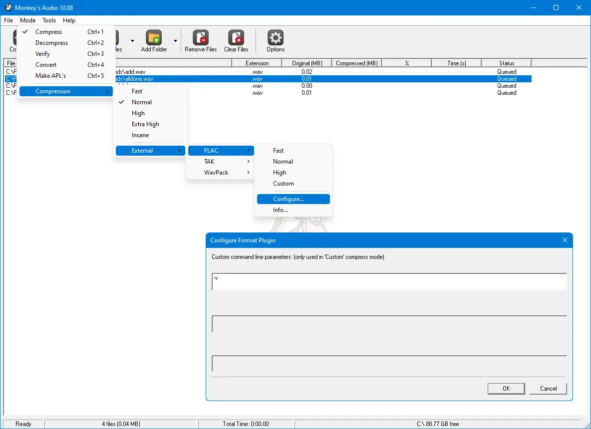 Monkey’s Audio поддерживает внешние кодировщики, расширяя функционал за счёт совместимости с популярными аудиостандартами.