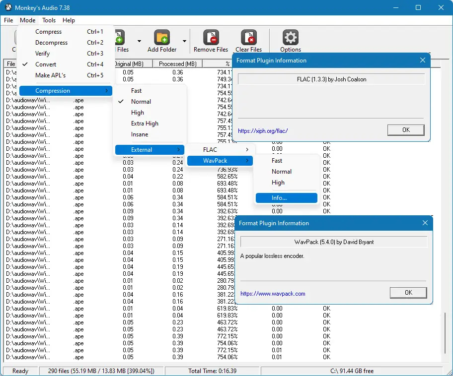 - Поддержка внешних кодировщиков и конвертация в Rkau, Wavpack и Shorten