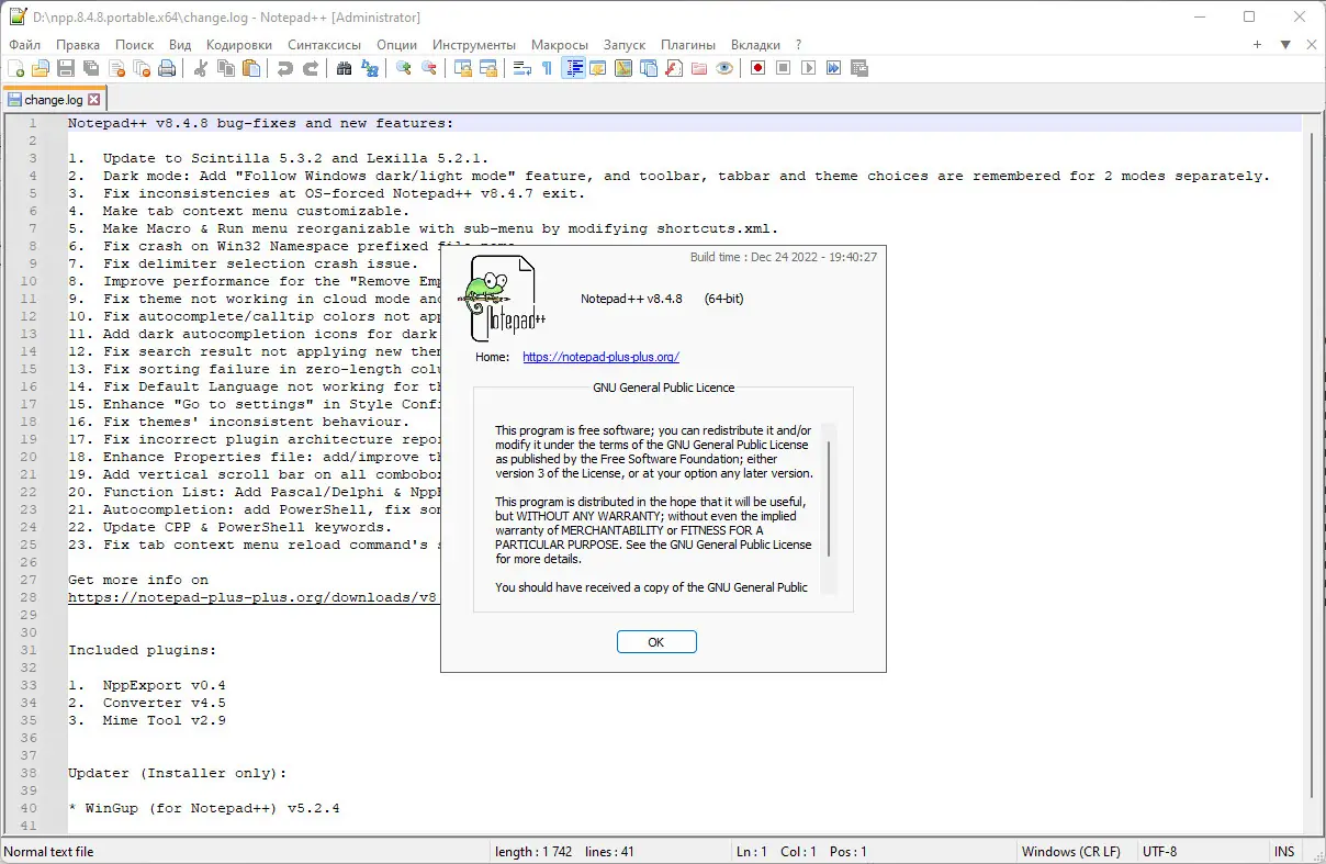 Notepad++ создан как альтернатива стандартному Блокноту Windows, предлагая значительно расширенные возможности для редактирования текста и программного кода. Приложение написано на языке C++ с использованием Win32 API и STL, что обеспечивает высокую производительность и минимальное потребление системных ресурсов. Программа распространяется под лицензией GPL, что делает её полностью бесплатной и доступной для модификации.