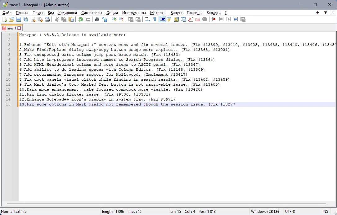 Программа доступна для загрузки в нескольких версиях, включая установочную и портативную. Портативная версия удобна для использования с флеш-накопителей и не оставляет следов в реестре. Редактор поддерживает автоматическое определение изменений в файлах, предотвращая потерю данных при внешних правках. Регулярные обновления улучшают стабильность и добавляют новые возможности. Интеграция с системой управления версиями, подсветка скобок и работа с большим количеством языков делают Notepad++ универсальным инструментом для повседневного использования.