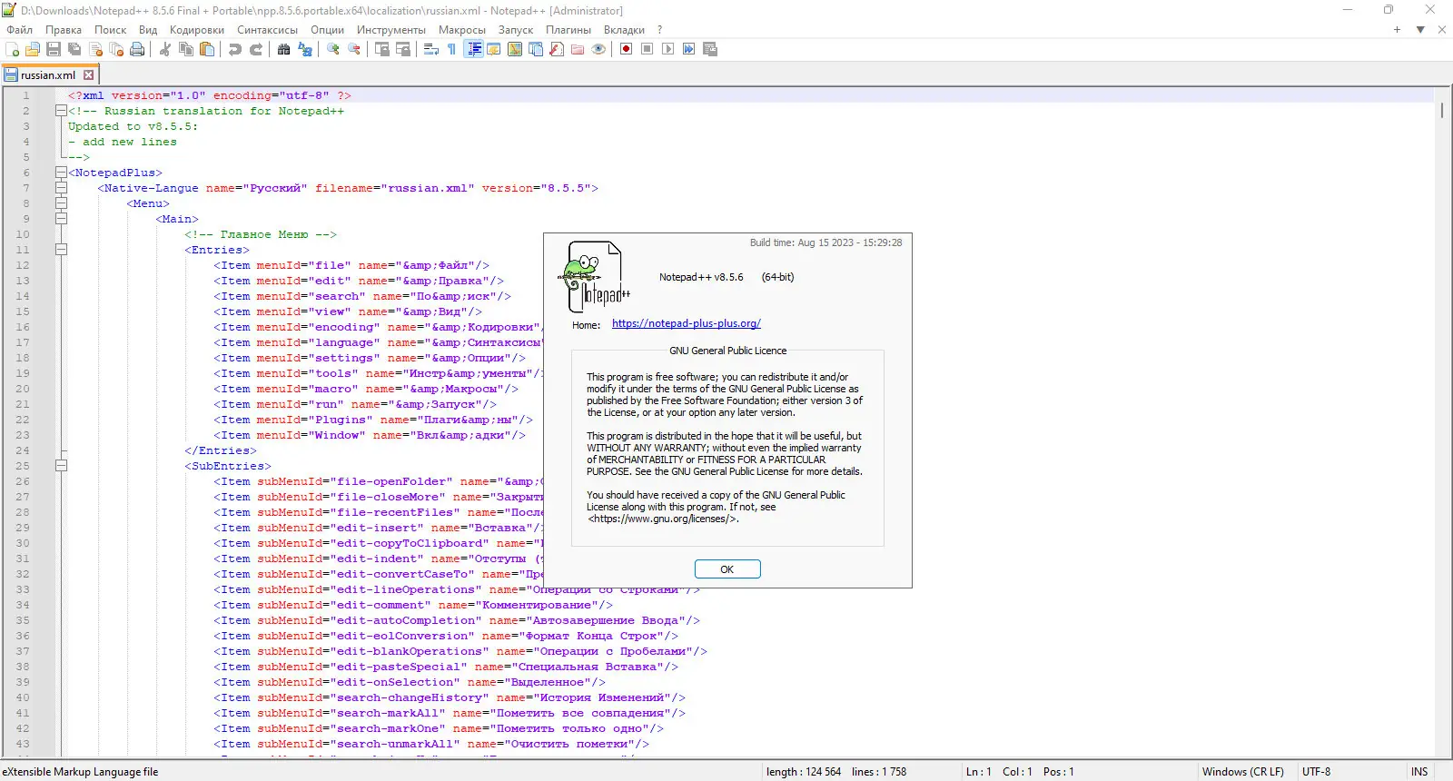 Notepad++ распространяется под лицензией GPL, что гарантирует свободу использования, модификации и распространения.