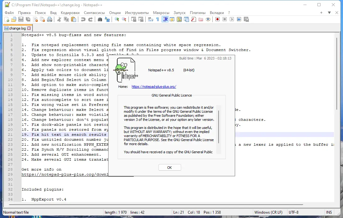 Notepad++ сочетает в себе производительность, гибкость и простоту интерфейса, что делает его незаменимым инструментом при разработке и редактировании кода.