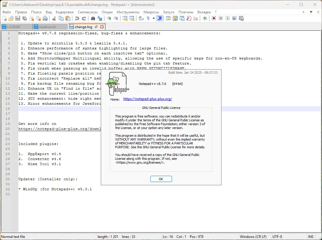 Notepad++ — это мощный и легковесный текстовый редактор с открытым исходным кодом, разработанный специально для программистов и технических специалистов, работающих в среде Windows. Программа предлагает расширенные возможности редактирования кода, включая подсветку синтаксиса, автозавершение, поддержку множественных вкладок и работу с регулярными выражениями. Благодаря своей оптимизации и использованию Win32 API, Notepad++ демонстрирует высокую производительность даже при работе с большими файлами.
