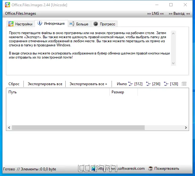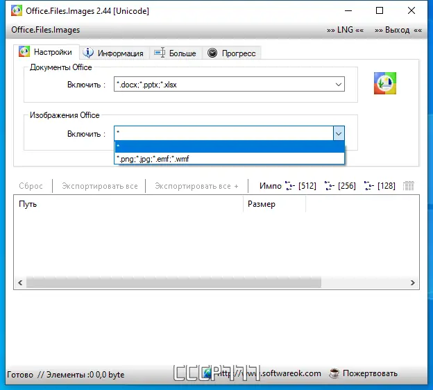 Office.Files.Images — это инструмент для быстрого анализа и извлечения изображений из документов Microsoft Office и OpenOffice. Программа поддерживает форматы docx, xlsx, pptx, ods, ott и другие, обеспечивая визуальный доступ ко всем встроенным рисункам, диаграммам и картинкам. Удобный интерфейс и высокая производительность делают её незаменимой при работе с большими объёмами файлов.