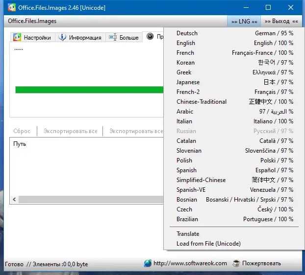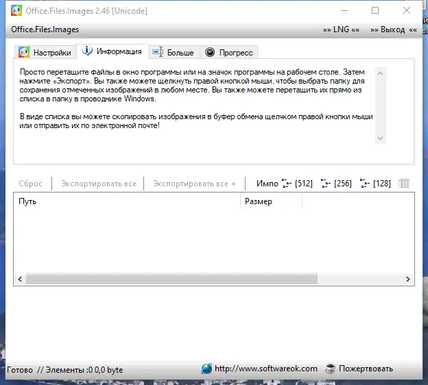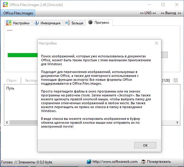 Office.Files.Images — это специализированный инструмент для быстрого поиска, анализа и извлечения изображений из документов Microsoft Office и Open Office. Программа поддерживает широкий спектр форматов, включая docx, xlsx, pptx, ods и другие, обеспечивая удобный визуальный обзор всех встроенных графических элементов. Идеальное решение для пользователей, которым необходимо повторно использовать изображения или систематизировать мультимедийные ресурсы в офисных файлах.