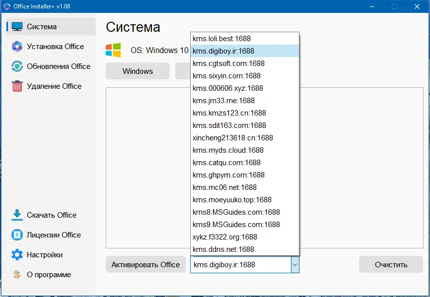 Программа доступна для скачивания в двух версиях — базовой и расширенной с функцией активации. Обновления включают исправление ошибок, добавление новых редакций Office и улучшения интерфейса. Версия Office Installer+ позволяет активировать пакет через встроенный KMS-клиент с возможностью указания пользовательских серверов. Поддержка различных конфигураций делает утилиту универсальным решением для установки Microsoft Office.