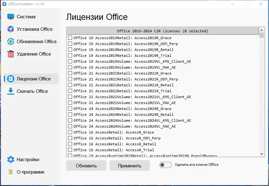 Программа позволяет избежать типичных ошибок при обновлении Office за счёт корректного управления лицензиями и ключами активации.