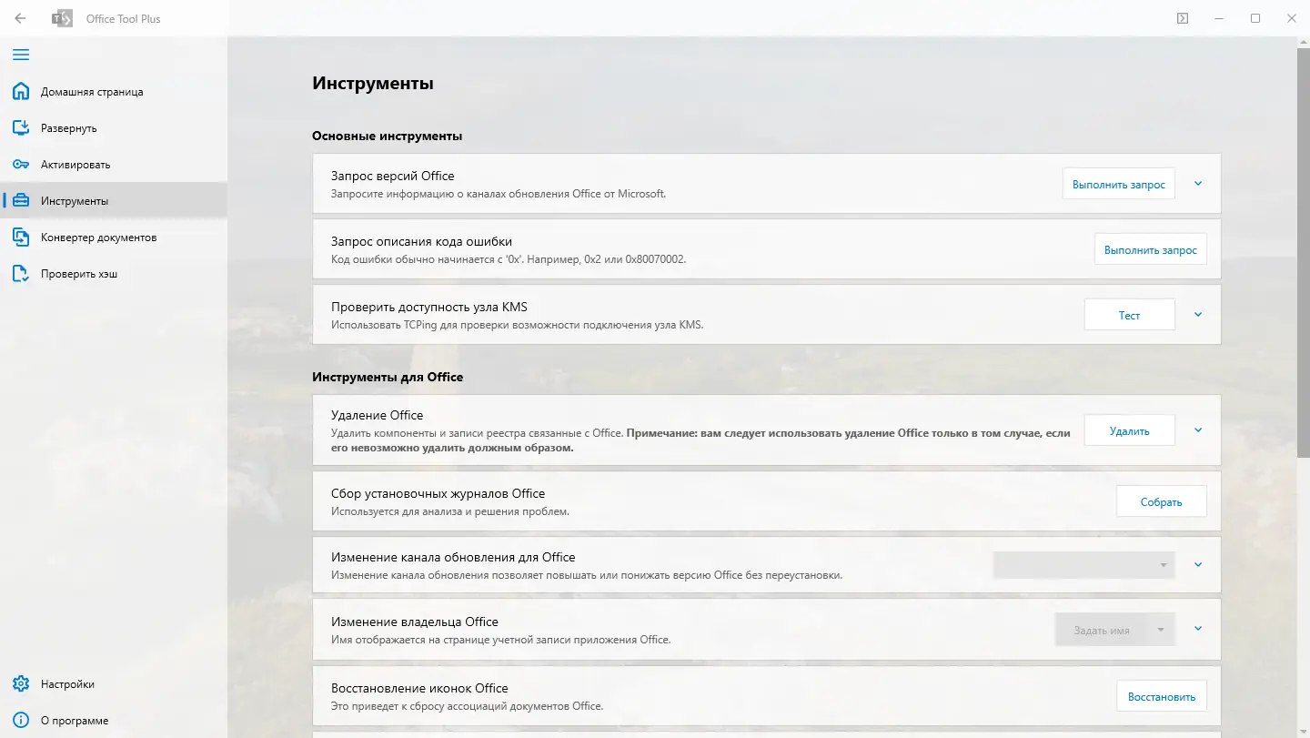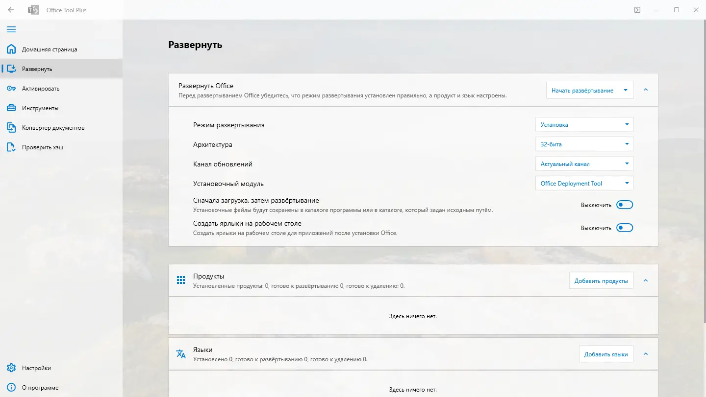 Office Tool Plus — это мощный инструмент для настройки, установки, управления и деактивации пакета Microsoft Office. Программа позволяет гибко управлять компонентами офисного пакета, выбирать нужные языки, изменять каналы обновления и создавать переносимые конфигурации. Она подходит как для домашних пользователей, так и для системных администраторов, которым важно быстро развернуть Office на множестве устройств.