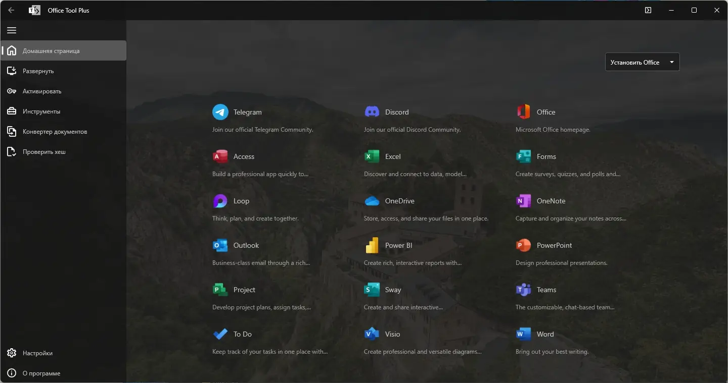 Office Tool Plus — это мощный инструмент для управления установкой, настройкой и активацией пакетов Microsoft Office. Программа предоставляет расширенные возможности по настройке офисного пакета, включая выбор версии, языковых пакетов, компонентов и методов активации. Она подходит как для домашних пользователей, так и для системных администраторов, которым необходимо быстро развернуть Office в корпоративной среде.