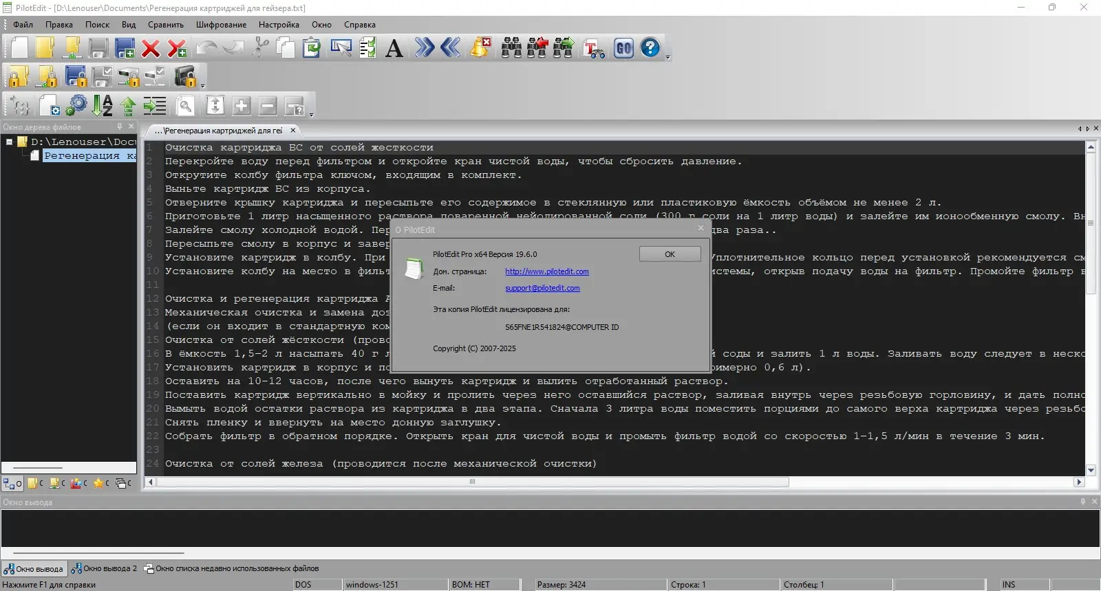 PilotEdit Lite — это облегчённая, но функциональная версия полноценного текстового редактора, ориентированная на эффективную обработку больших файлов. Программа способна открывать, редактировать и сохранять документы объёмом более 10 гигабайт, что делает её незаменимой при работе с логами, базами данных и исходным кодом. Поддержка различных кодировок, включая UTF-8, UTF-16 и DOS/UNIX-форматы, обеспечивает корректное отображение текста независимо от источника. Автоматическое определение кодировки при открытии файла упрощает процесс редактирования без необходимости ручной настройки.