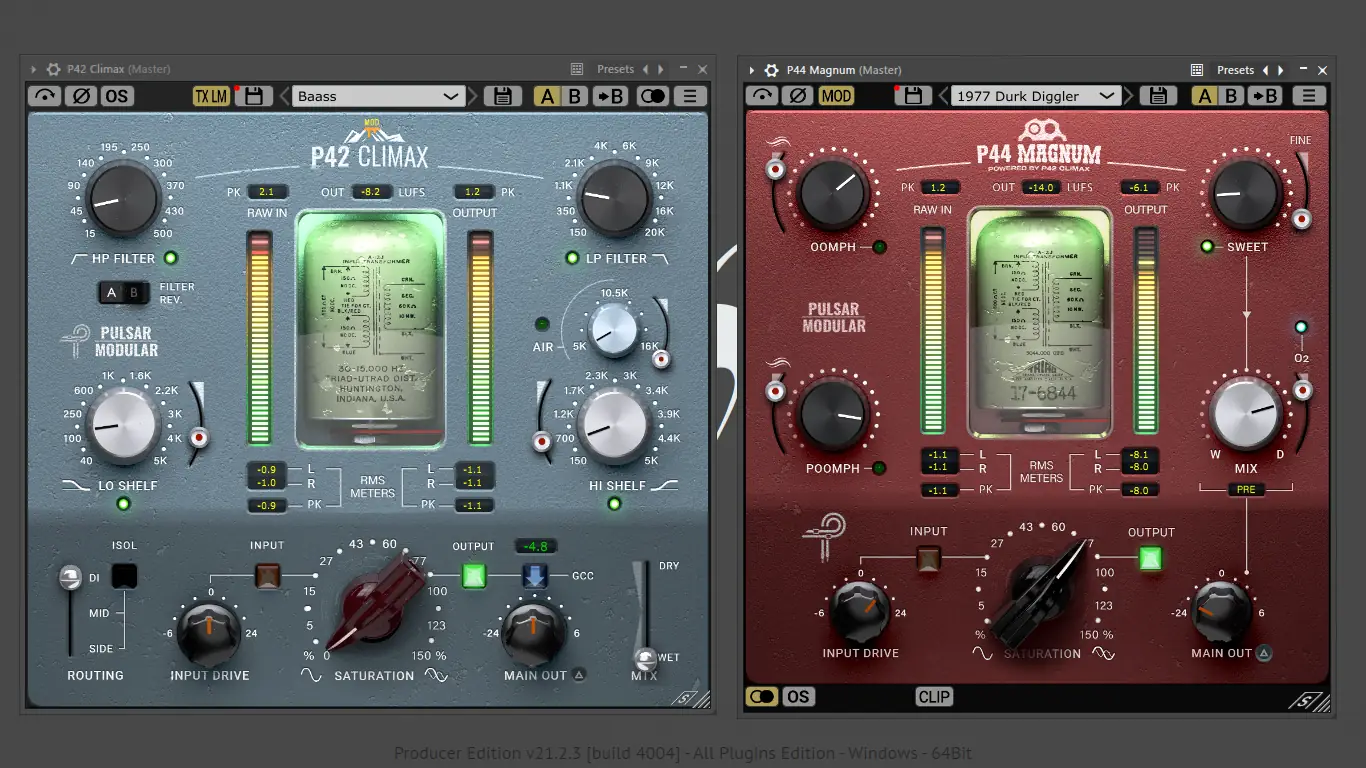 Преимущества Pulsar Modular Complete Effects Bundle очевидны при первом же использовании. Плагины сочетают в себе элегантный дизайн, высокую стабильность и исключительное качество звука. Они подходят как для повседневного микширования, так и для тонкой доводки финального мастер-файла. Благодаря точному моделированию аналоговых схем, каждый инструмент добавляет характер без искажения исходного сигнала. Аудиофилия реализована на уровне, сравнимом с топовыми коммерческими решениями. При этом производительность остается на высоте — даже при загрузке сотен экземпляров нагрузка на CPU остается предсказуемой. Отдельно стоит отметить реализацию уникальных архитектур, таких как Fixed Filter Bank в P915 Medusa или двухшинный аналоговый воркфлоу в P455 MDN Sidecar. Эти решения не просто копируют аппаратные прототипы, а расширяют их функционал, добавляя современные элементы управления.