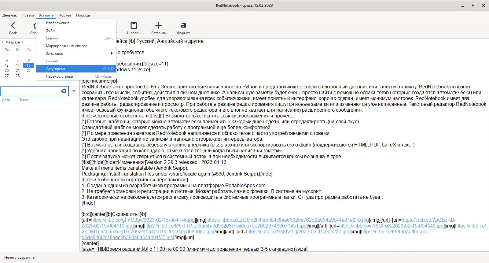 Описание RedNotebook
