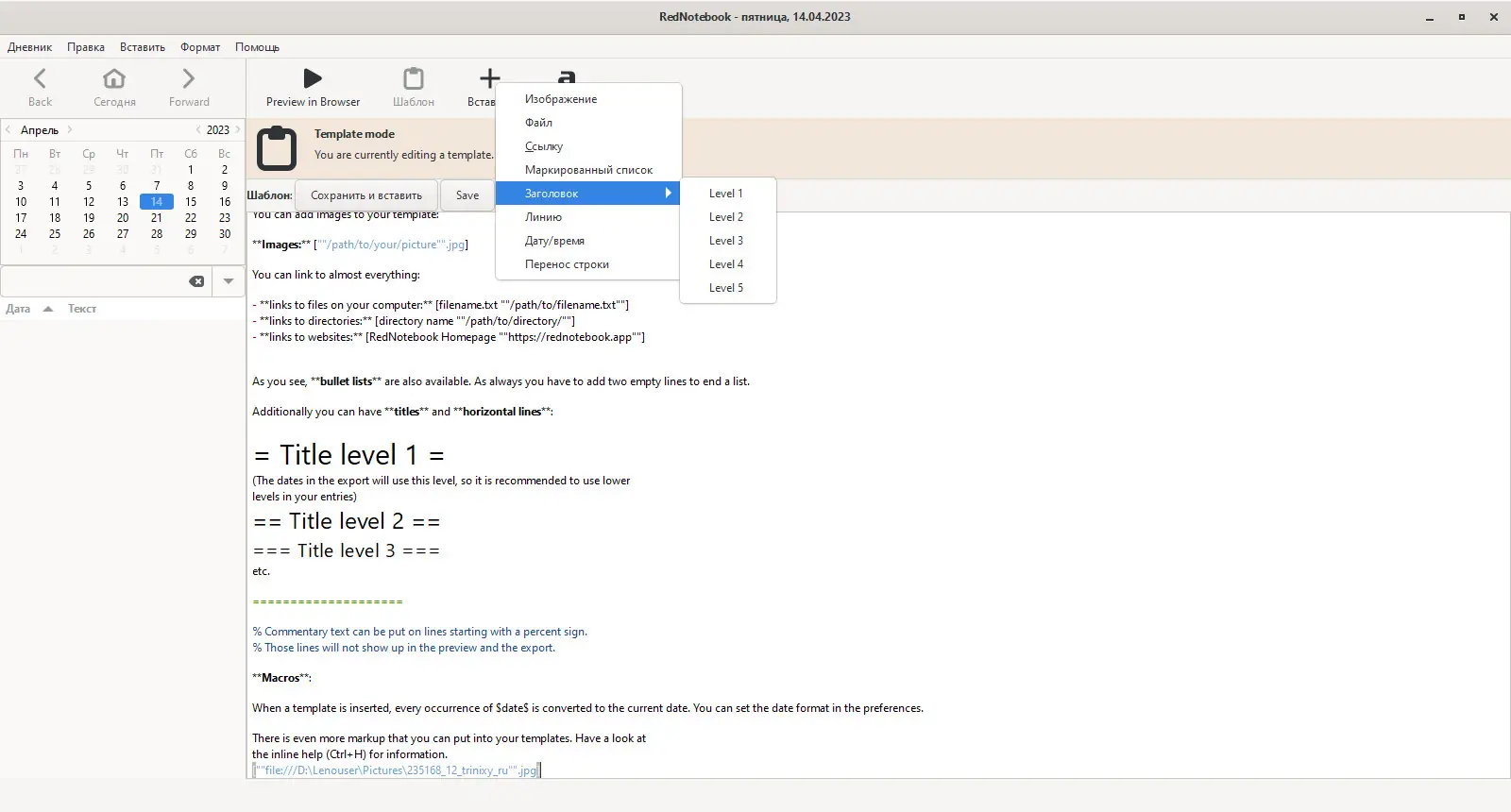 Как пользоваться RedNotebook